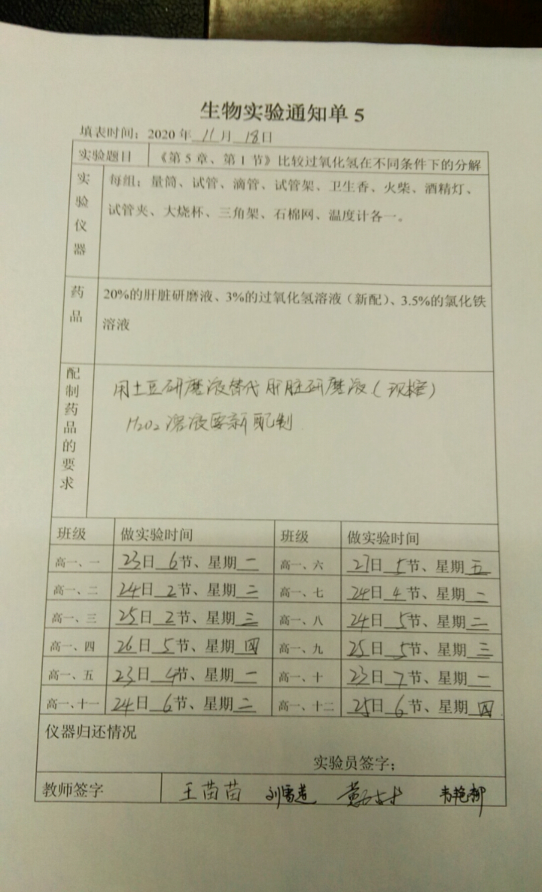 实验登记表