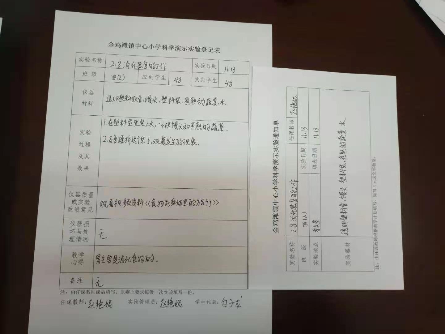 实验登记表