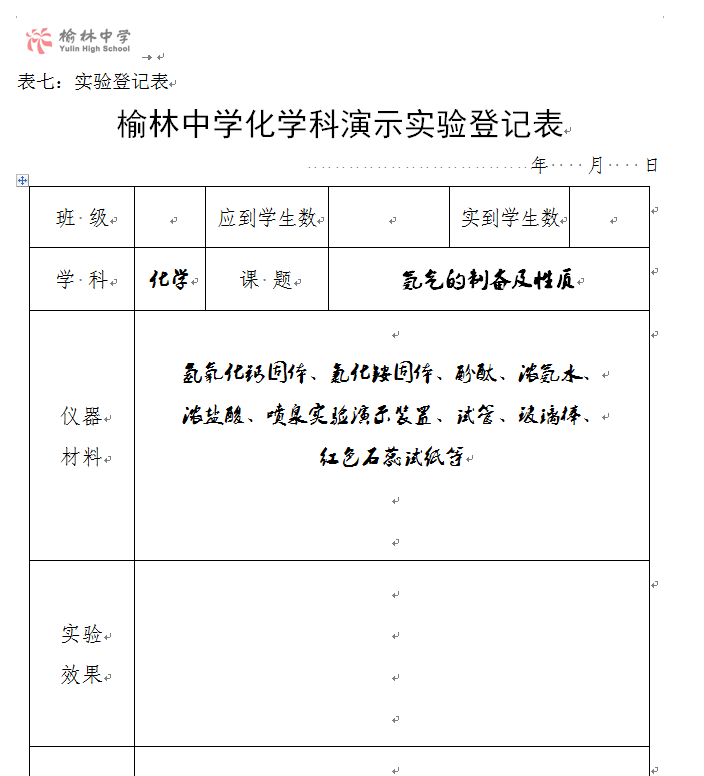 实验登记表