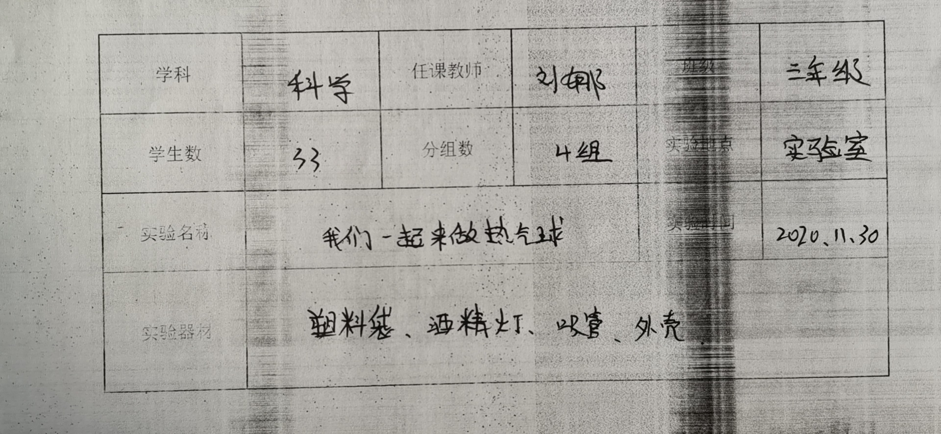 实验登记表