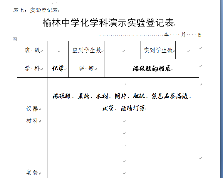 实验登记表