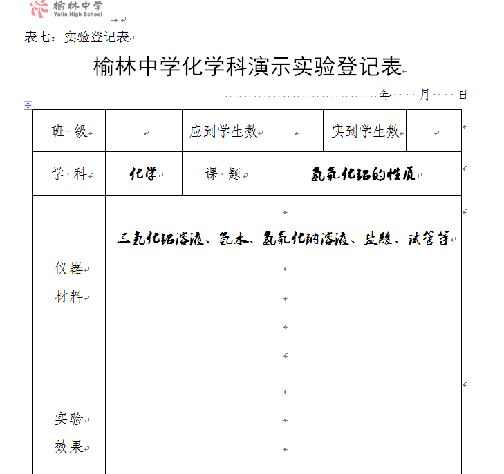 实验登记表