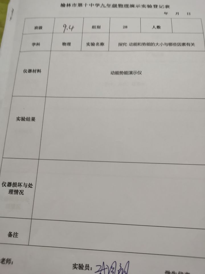 实验登记表
