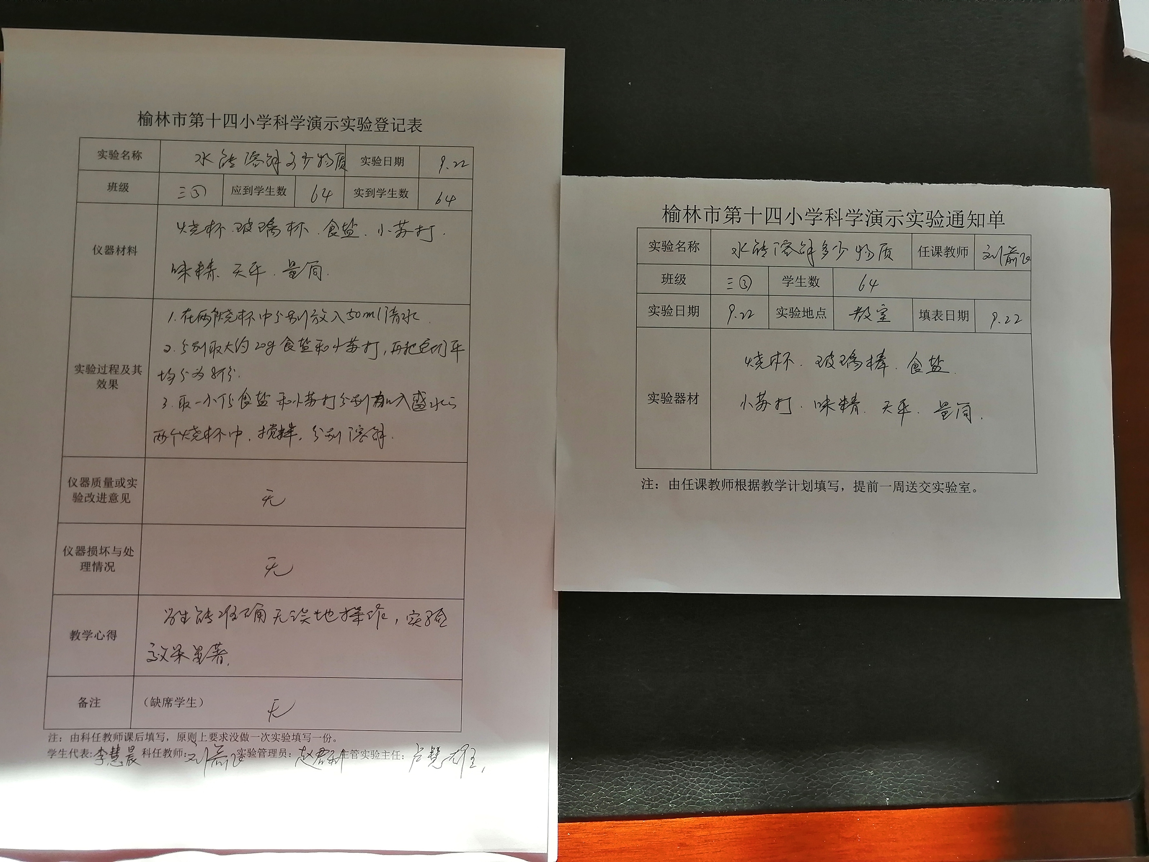 实验登记表