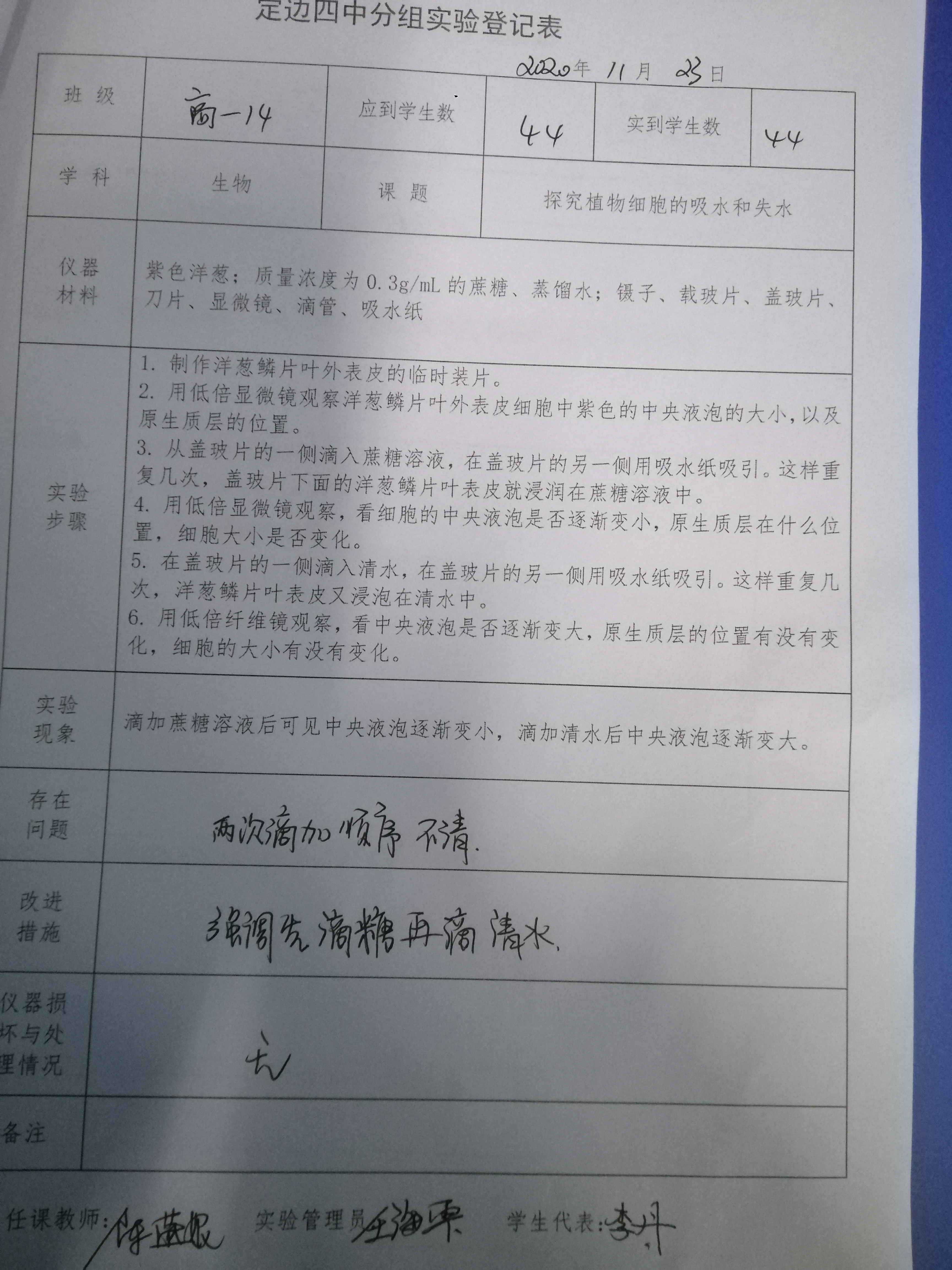 实验登记表