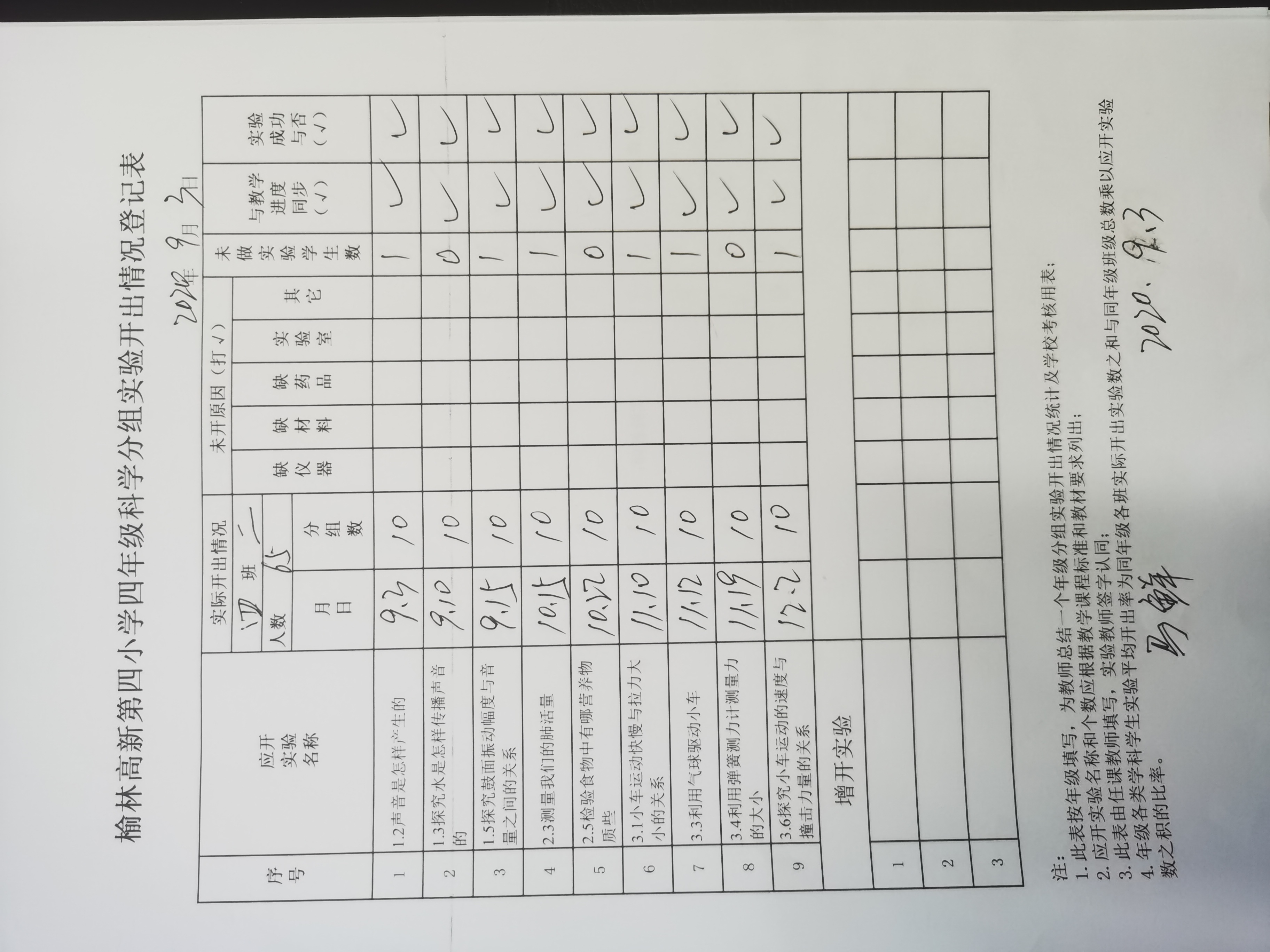 实验登记表