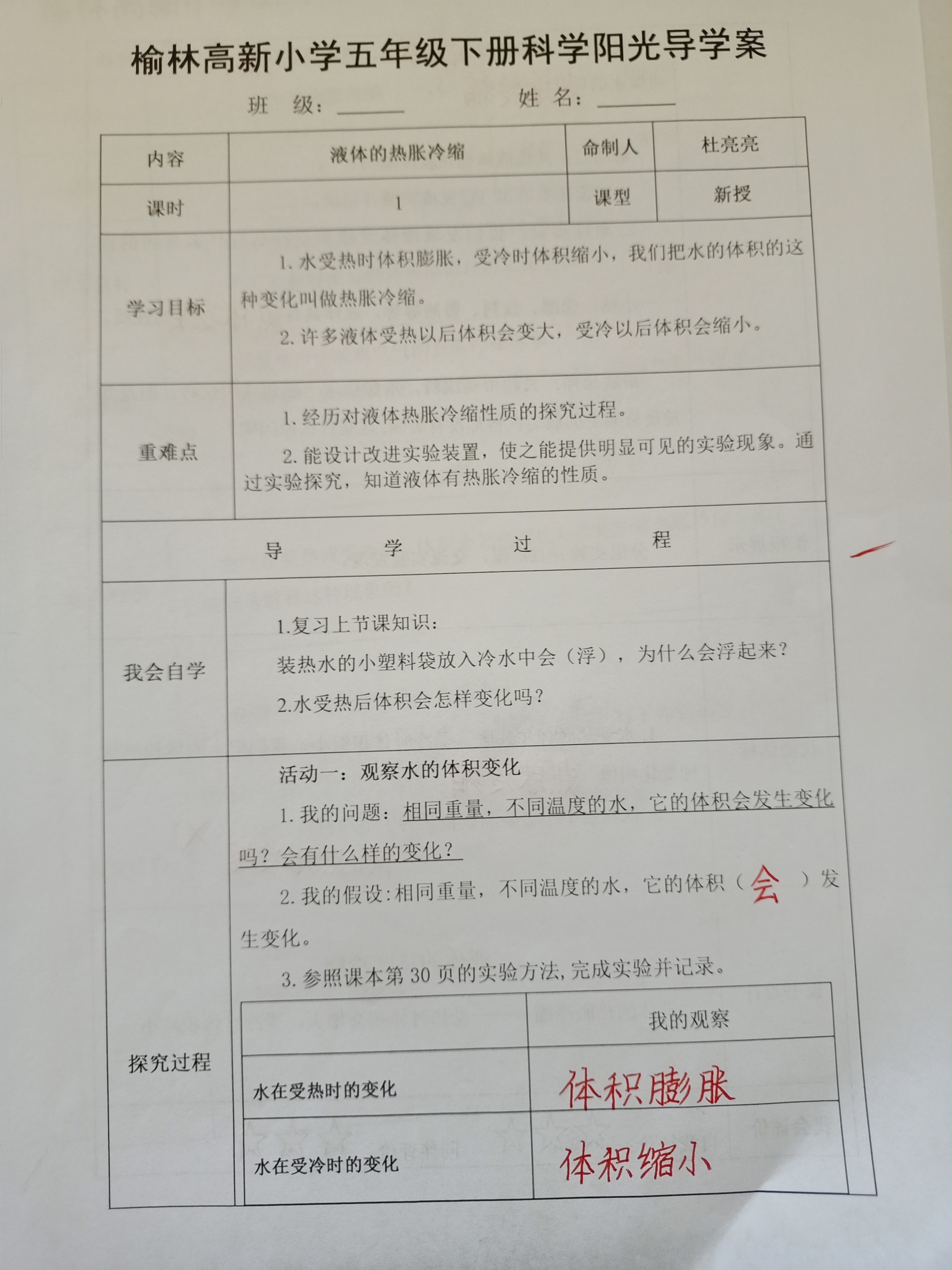 液体的热胀冷缩