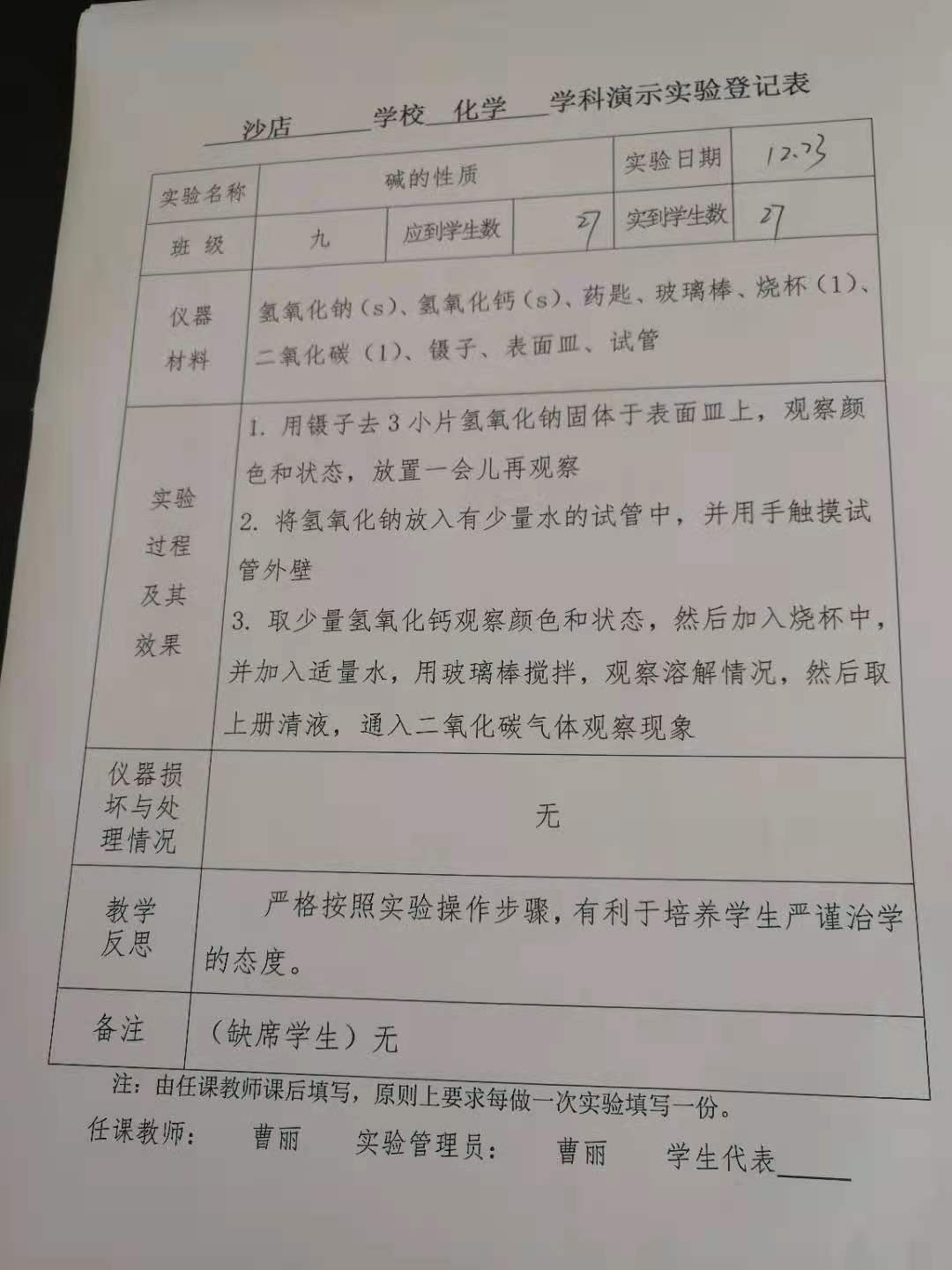 实验登记表