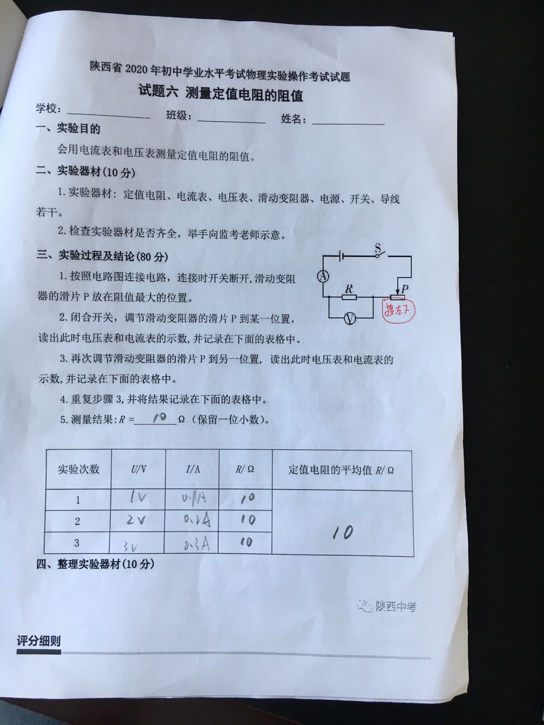测量定值电阻的阻值