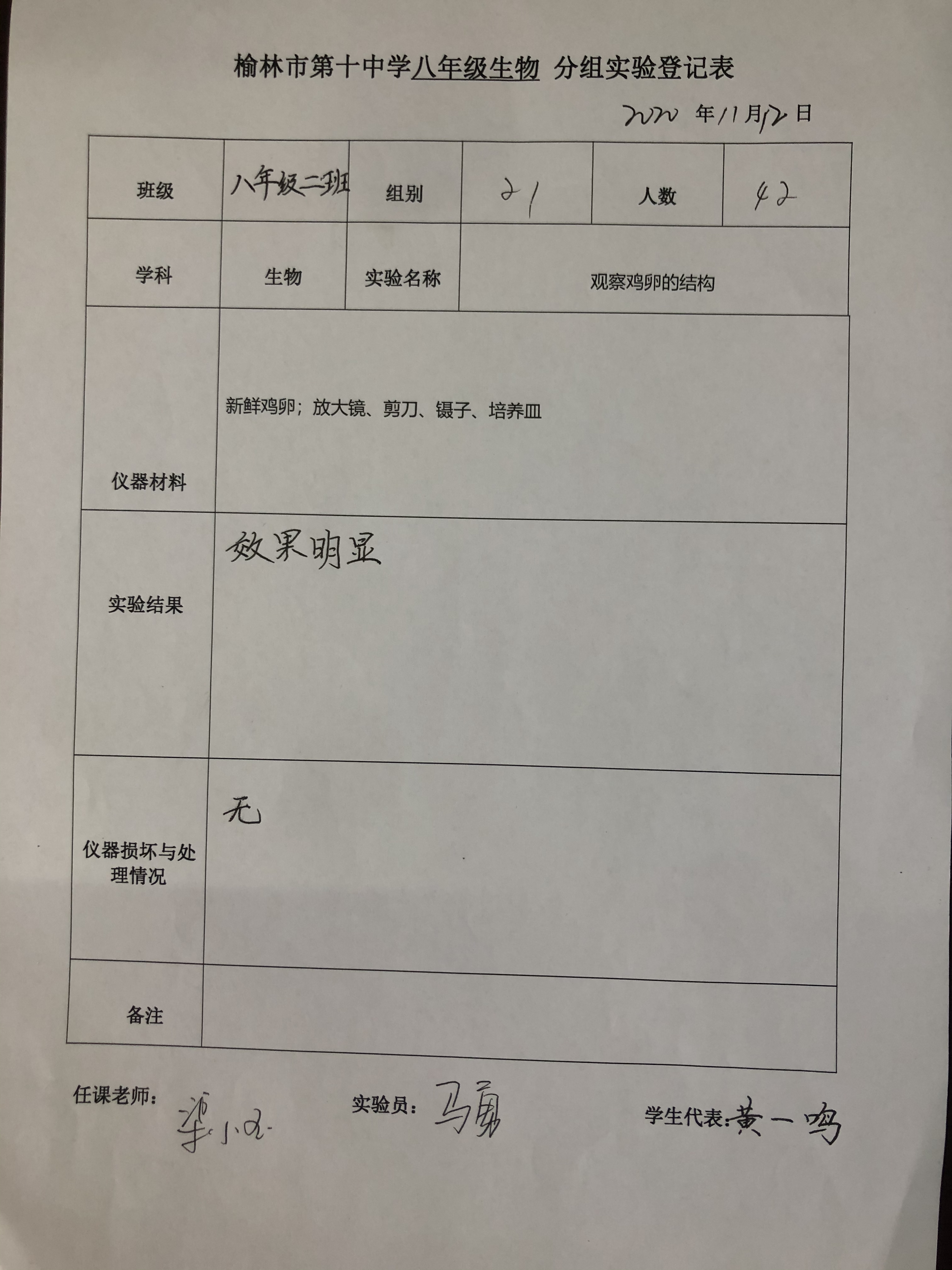 观察鸡卵的结构