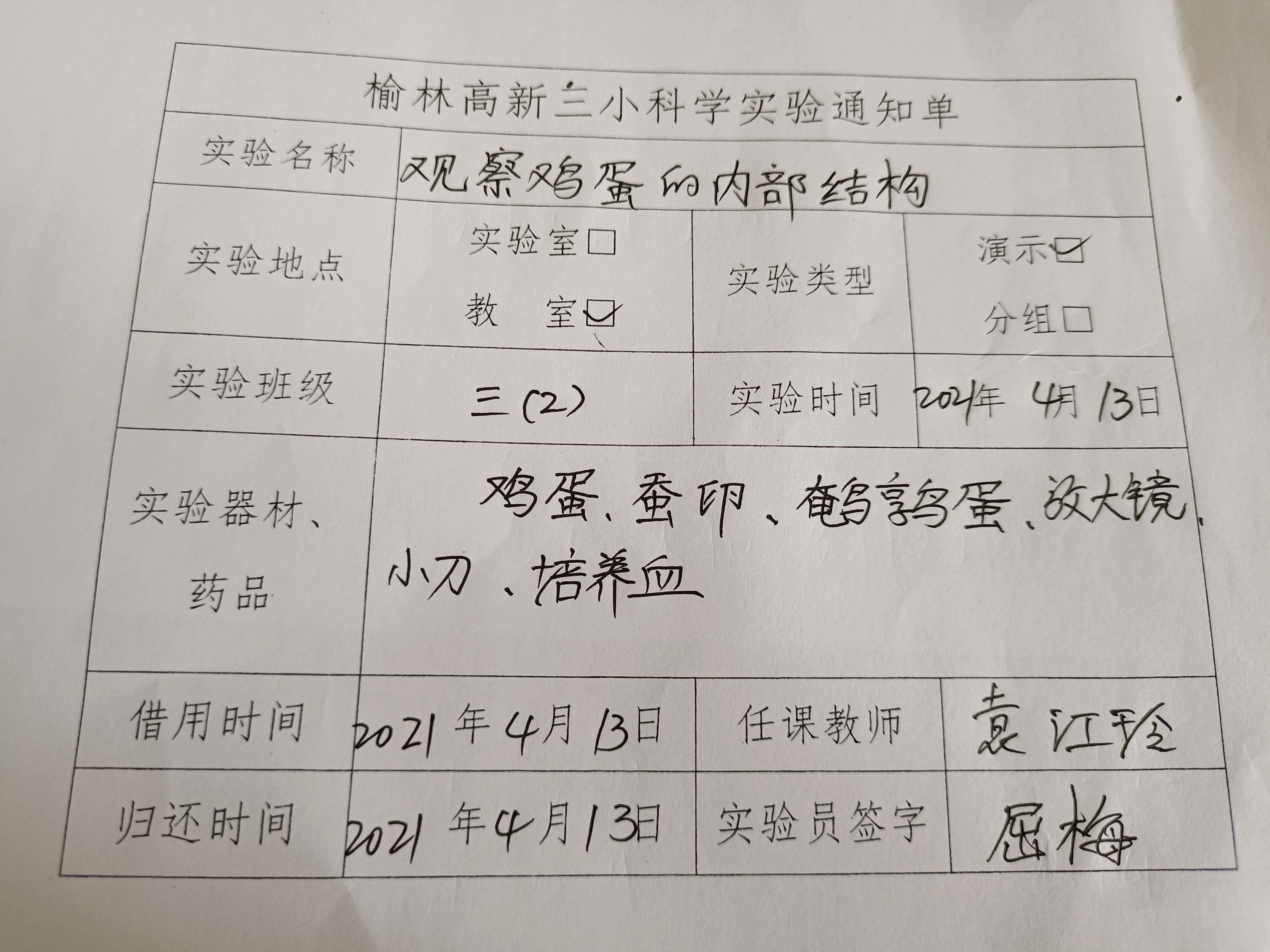 实验登记表