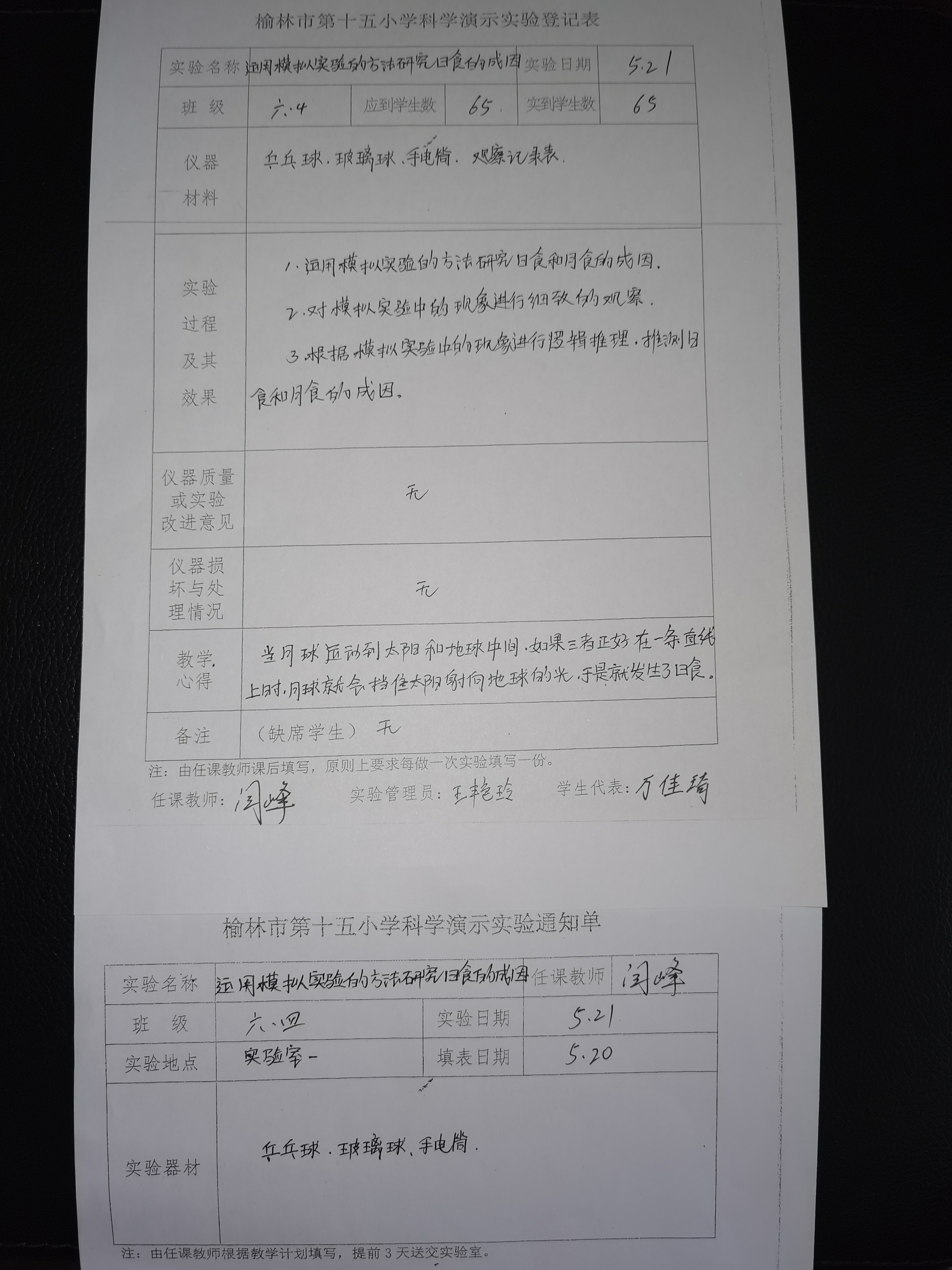 实验登记表