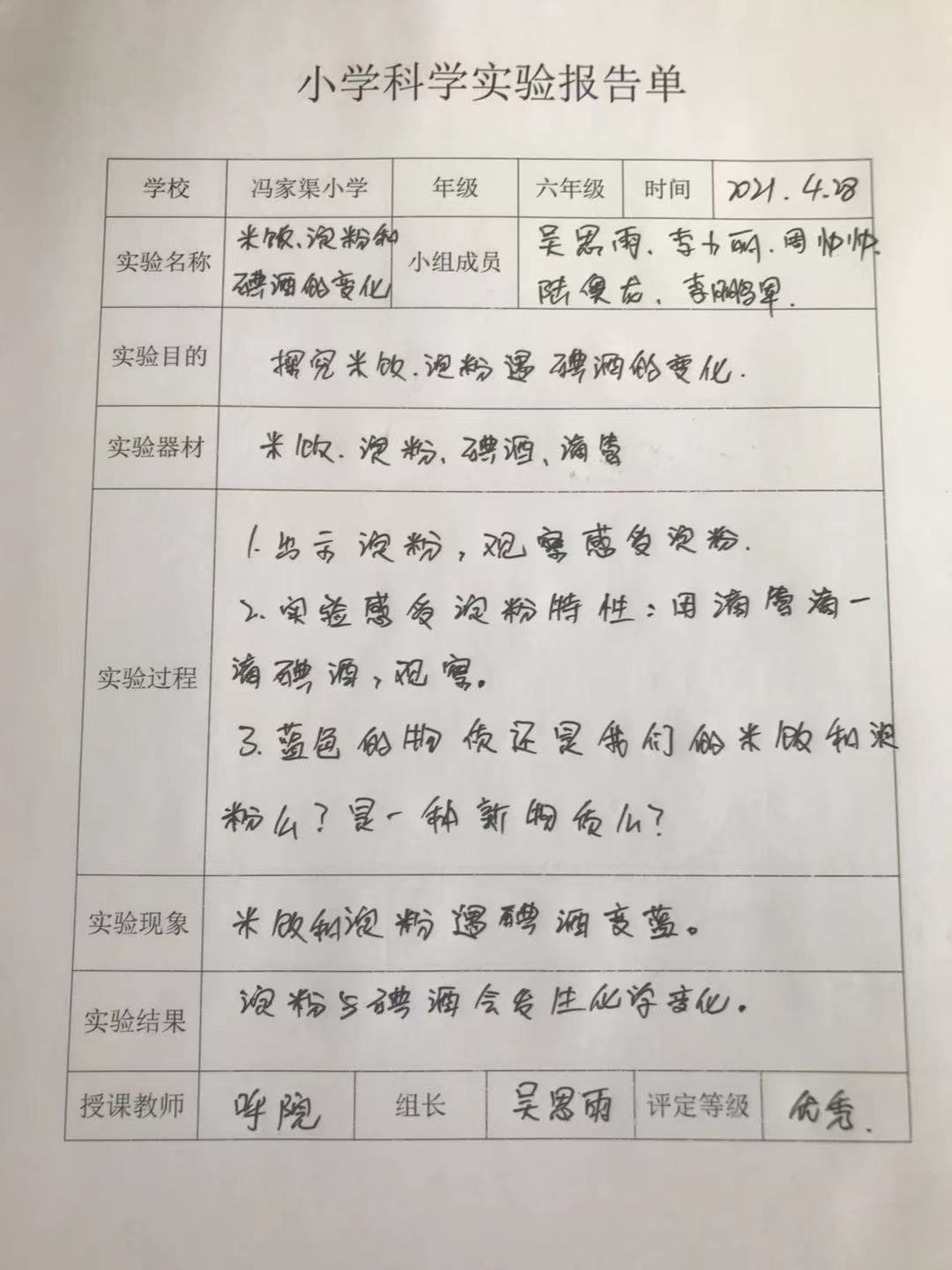 米饭、淀粉和碘酒的变化