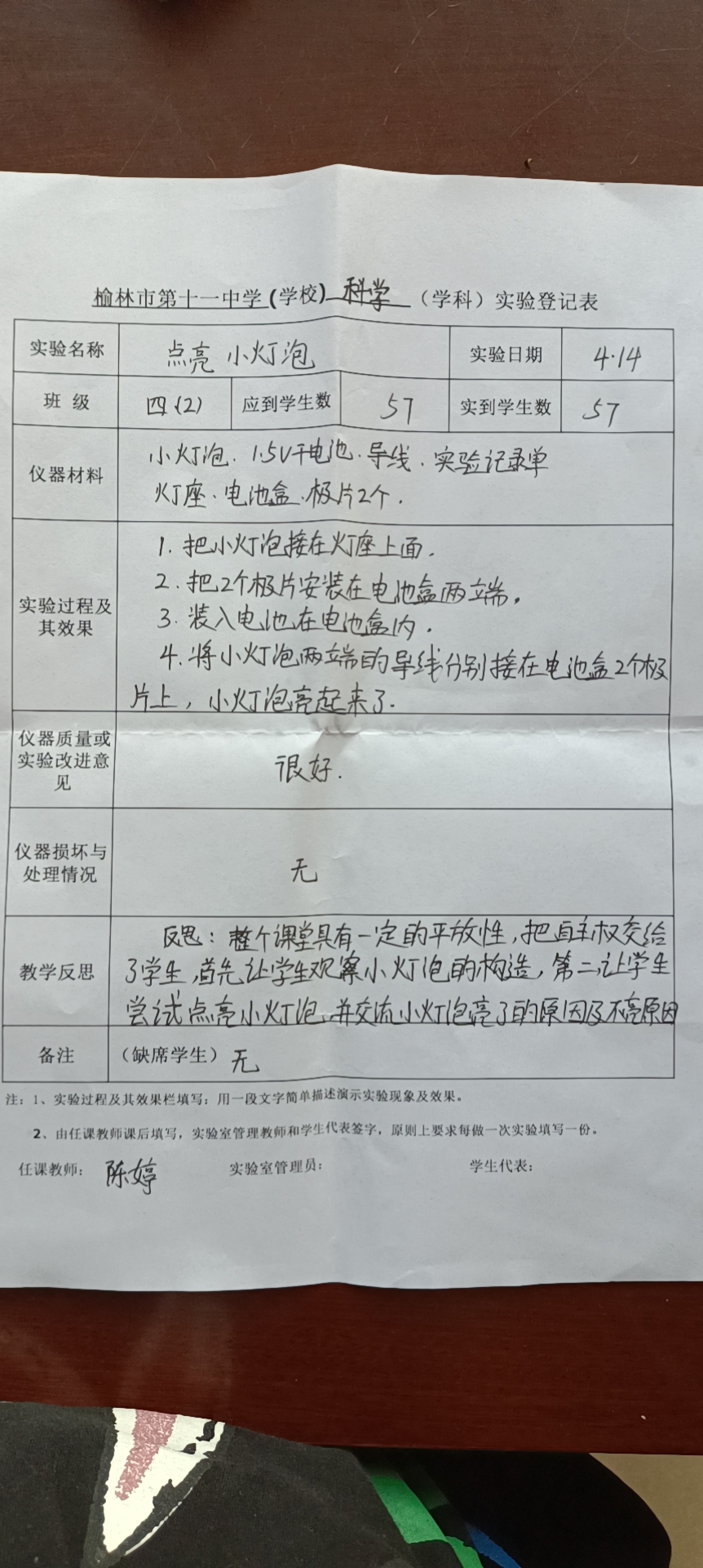 实验登记表