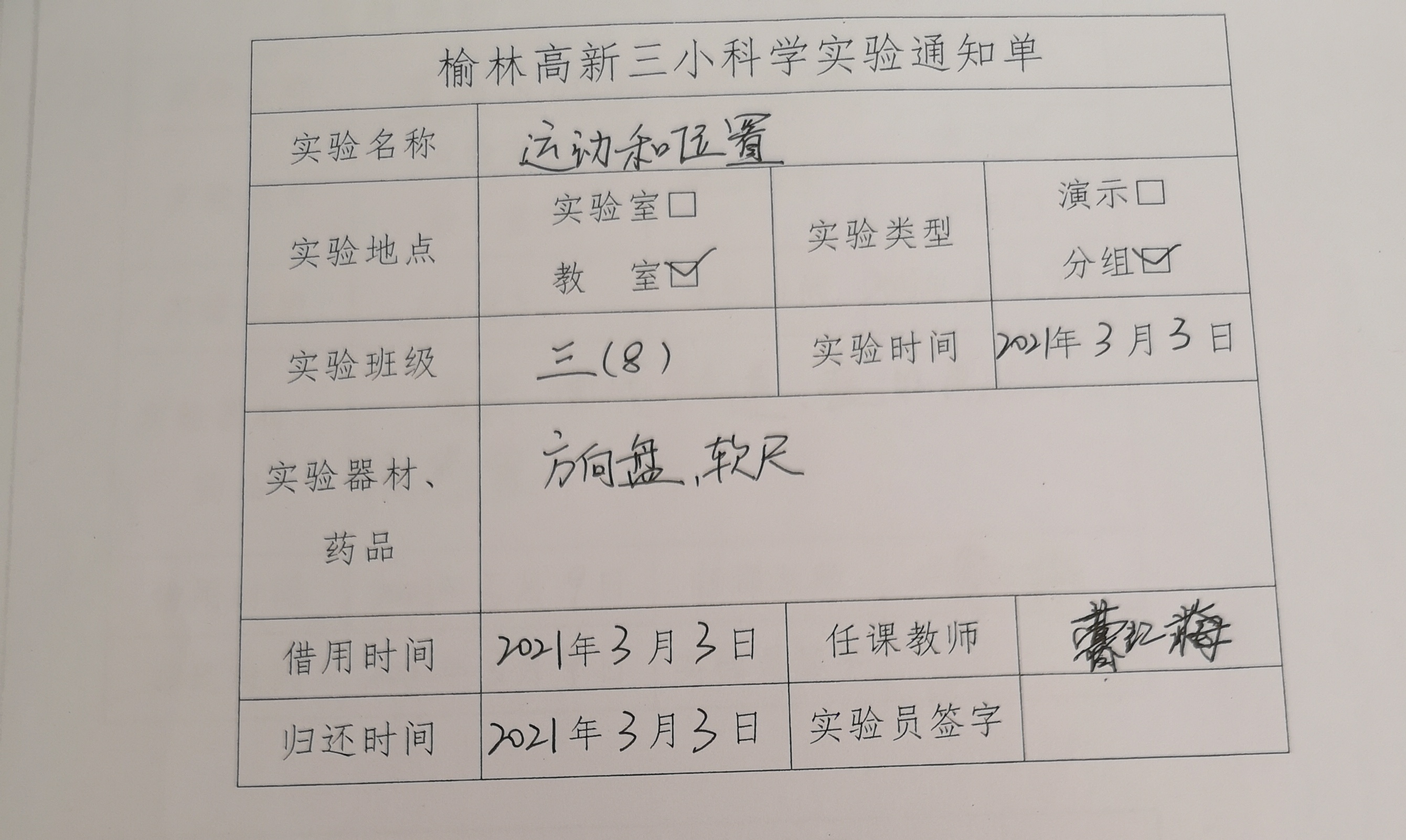 实验登记表