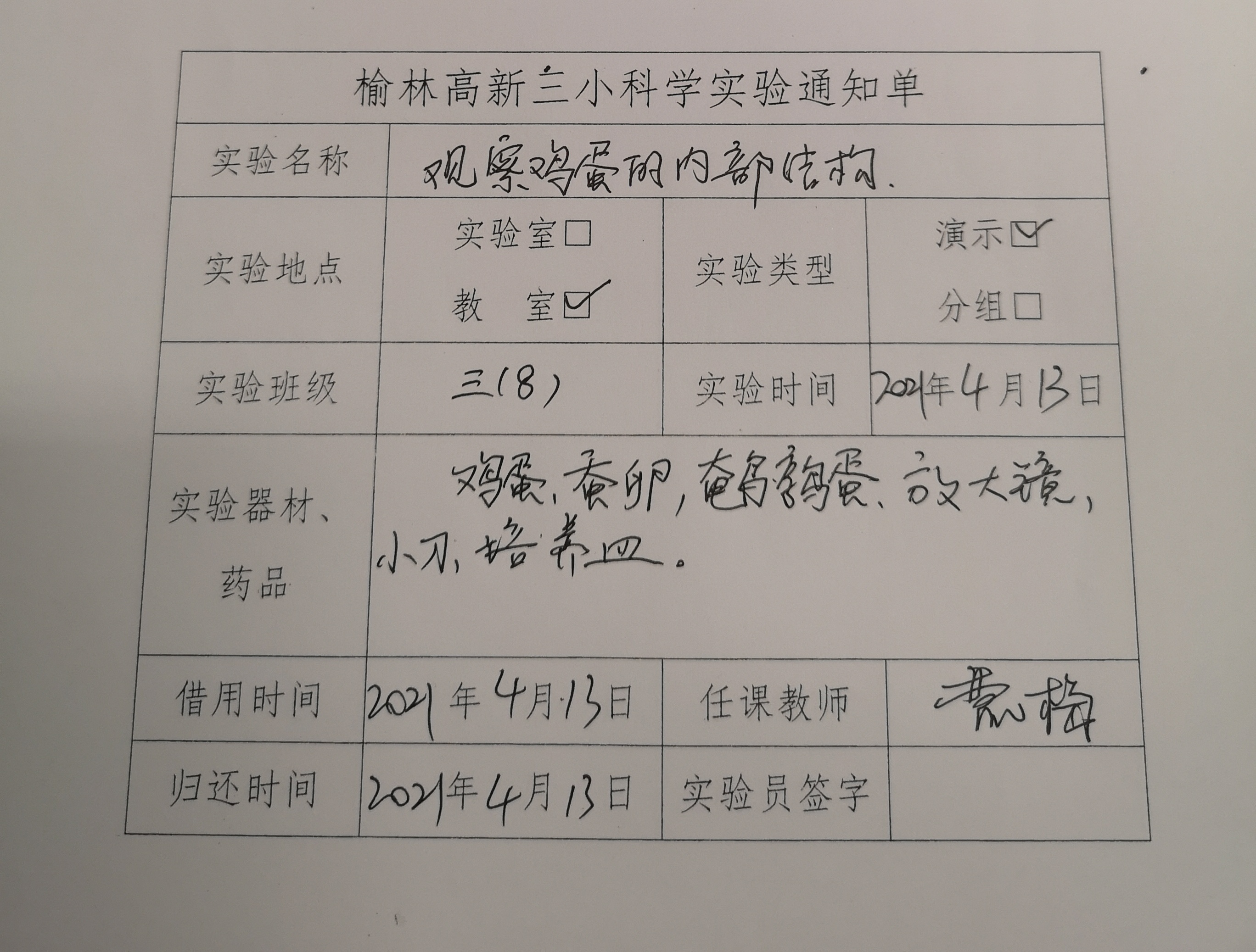 实验登记表