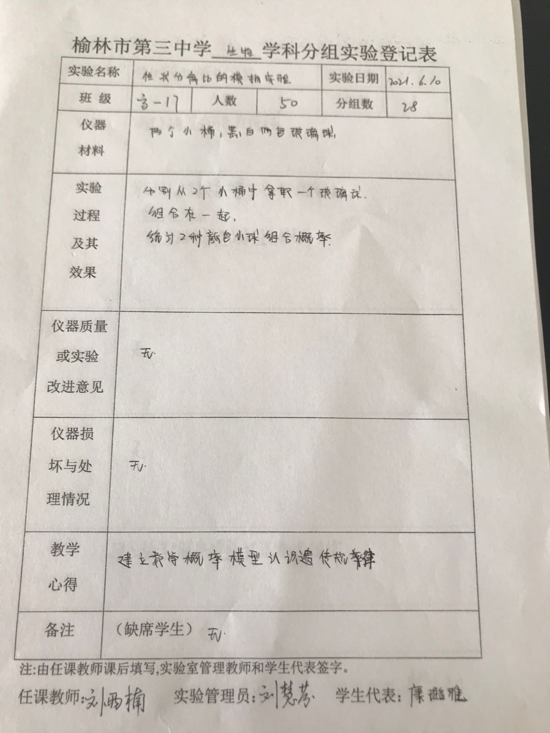 实验登记表