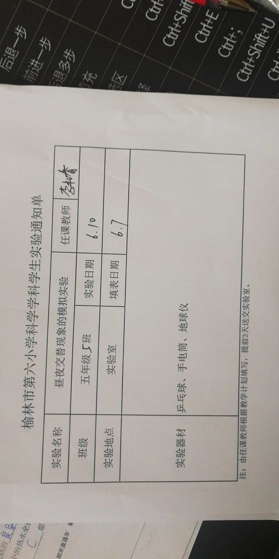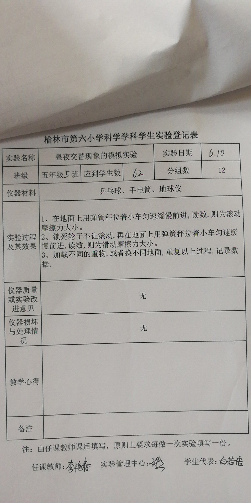 实验登记表
