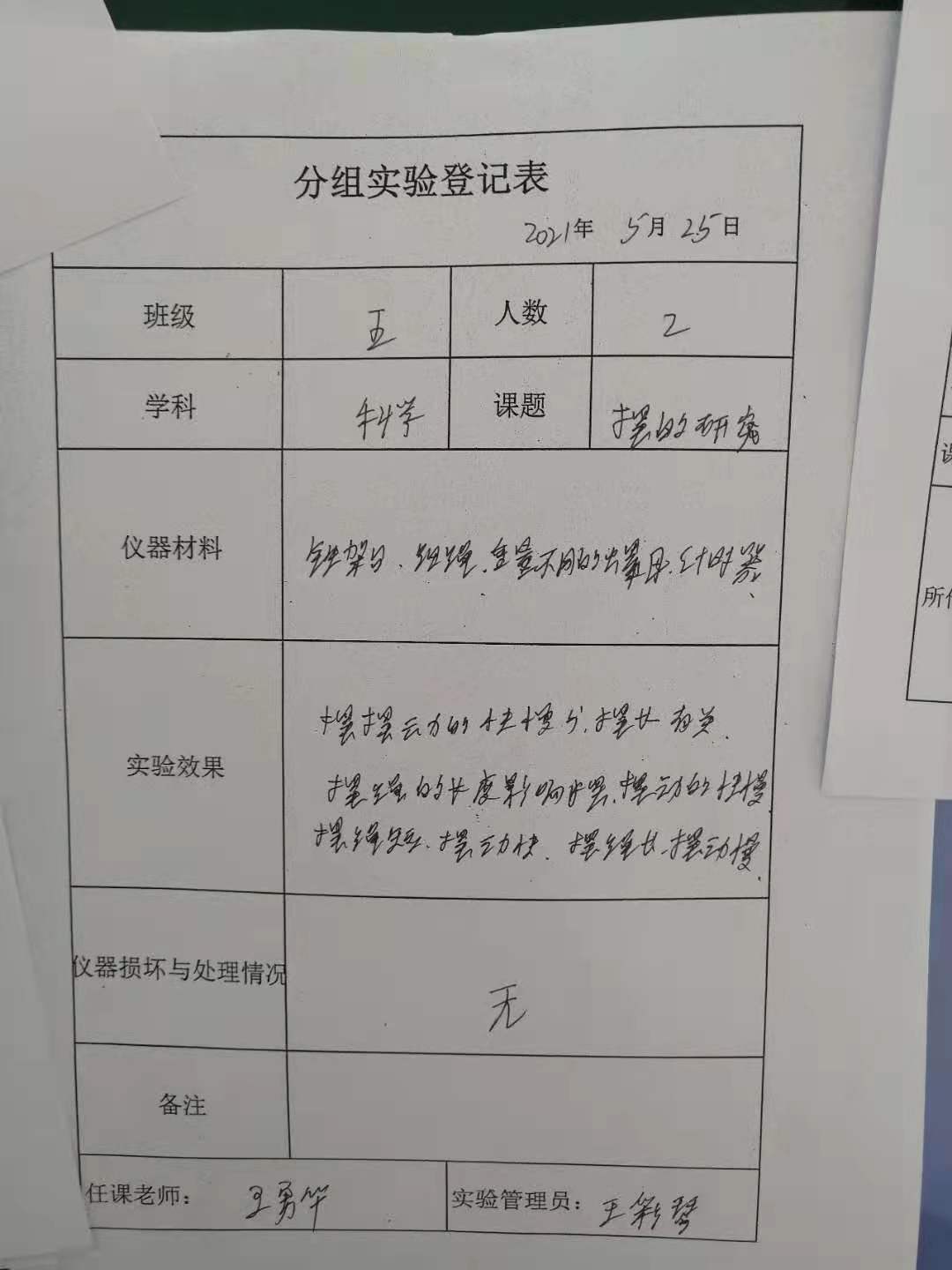 实验登记表