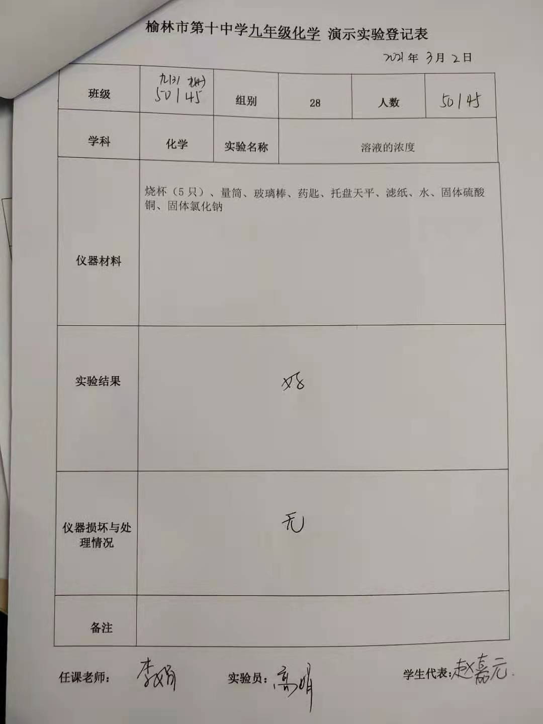 实验登记表