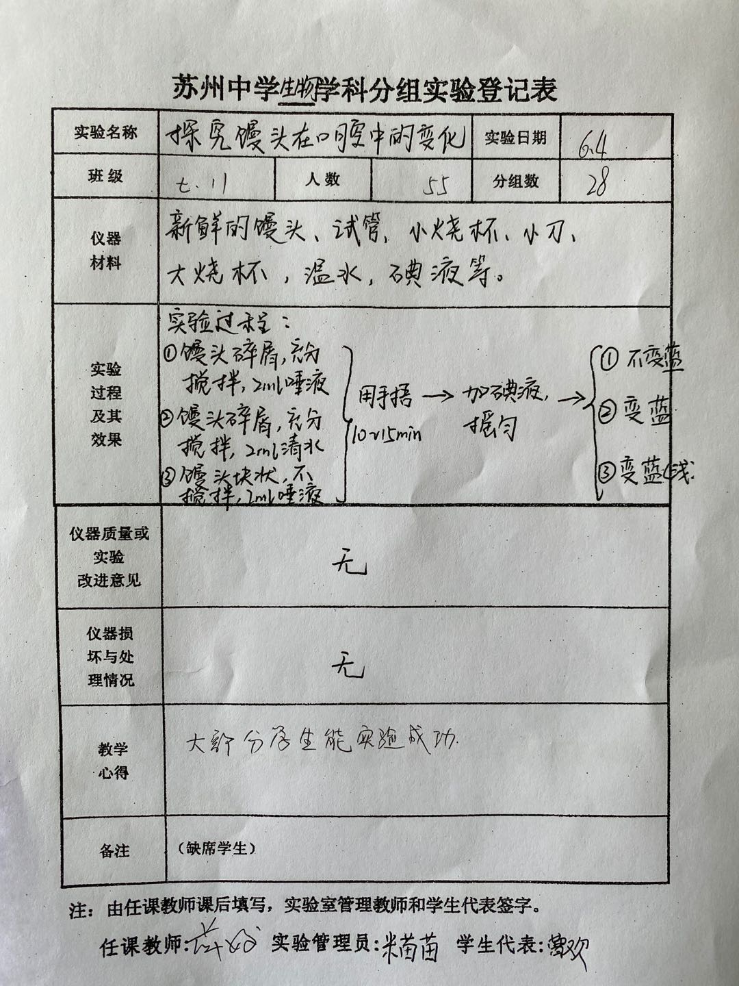 实验登记表