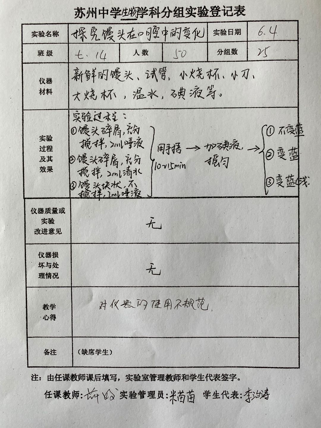 实验登记表