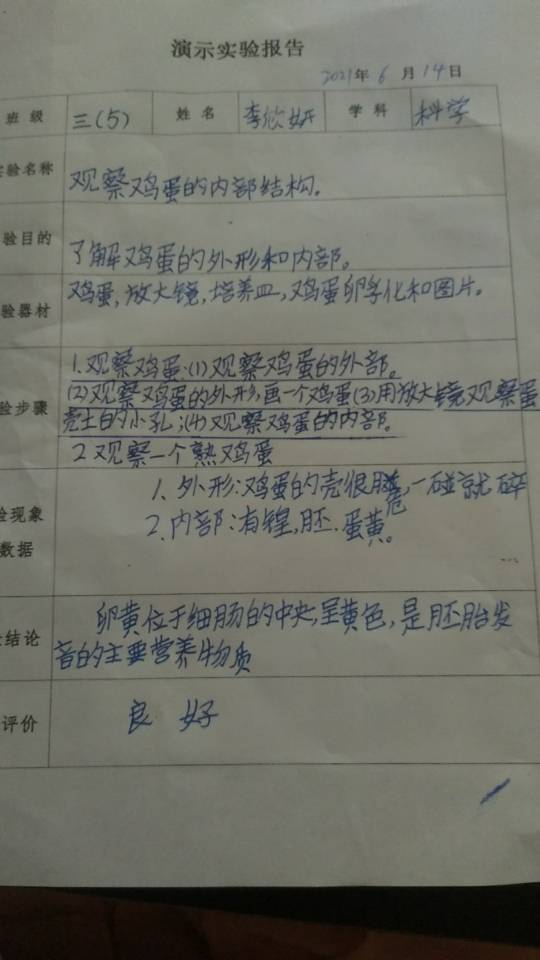 观察鸡蛋的内部结构