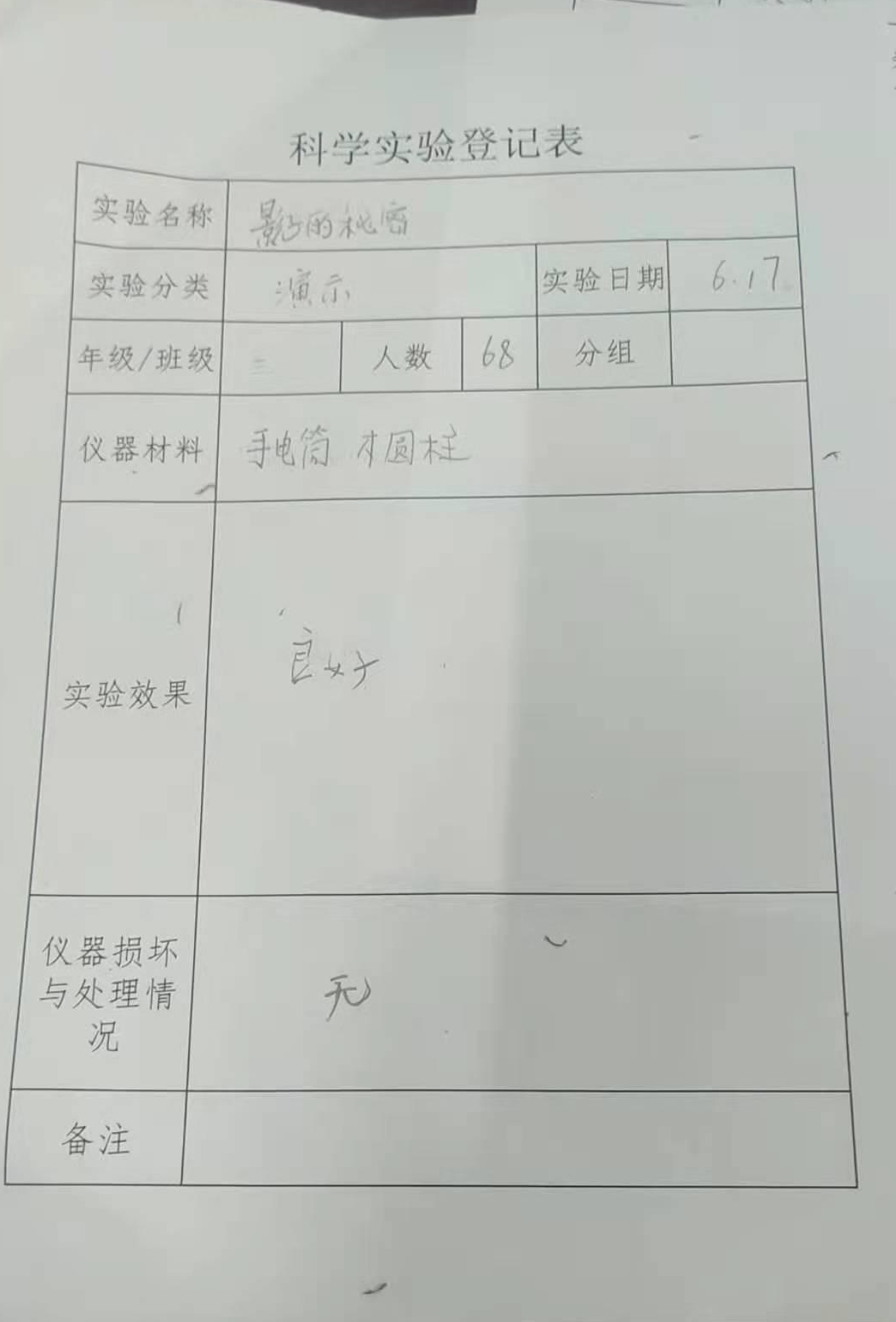 实验登记表