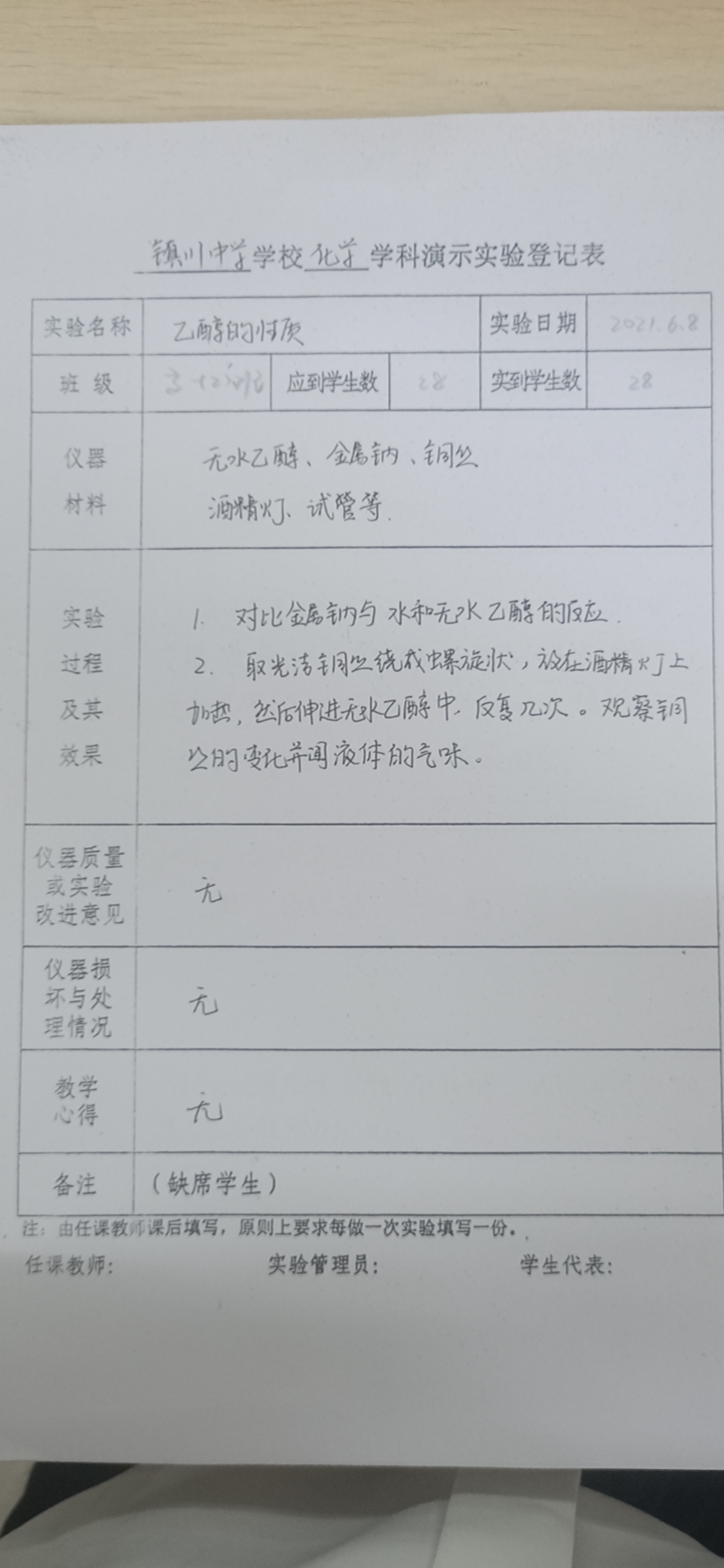 实验登记表