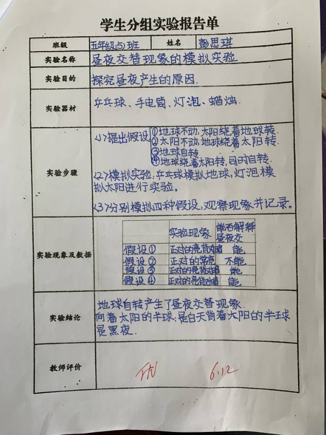 昼夜交替现象的模拟实验
