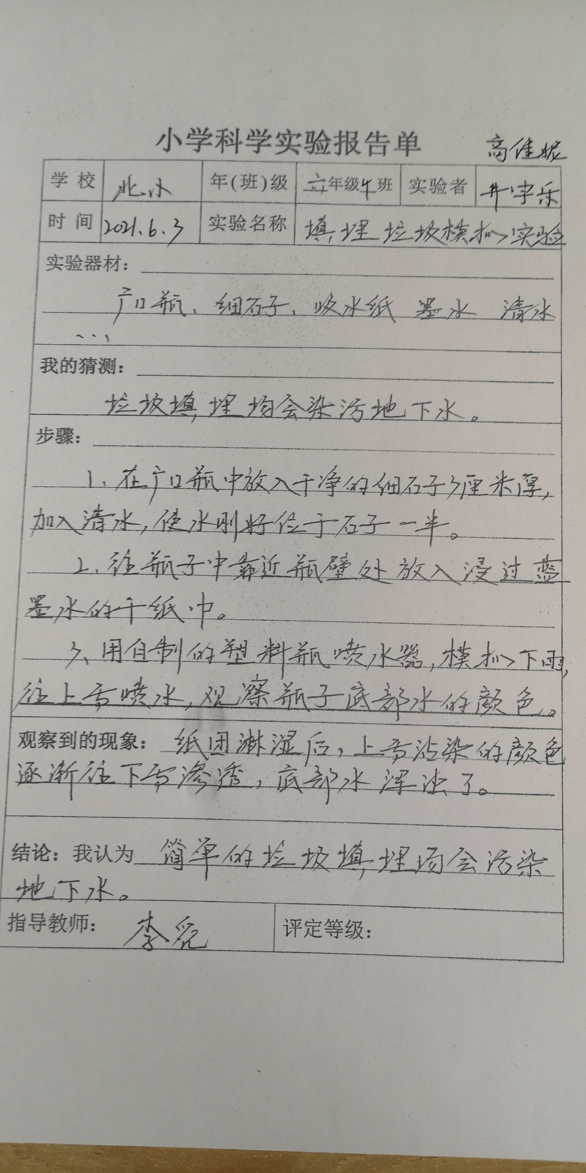 填埋垃圾模拟实验