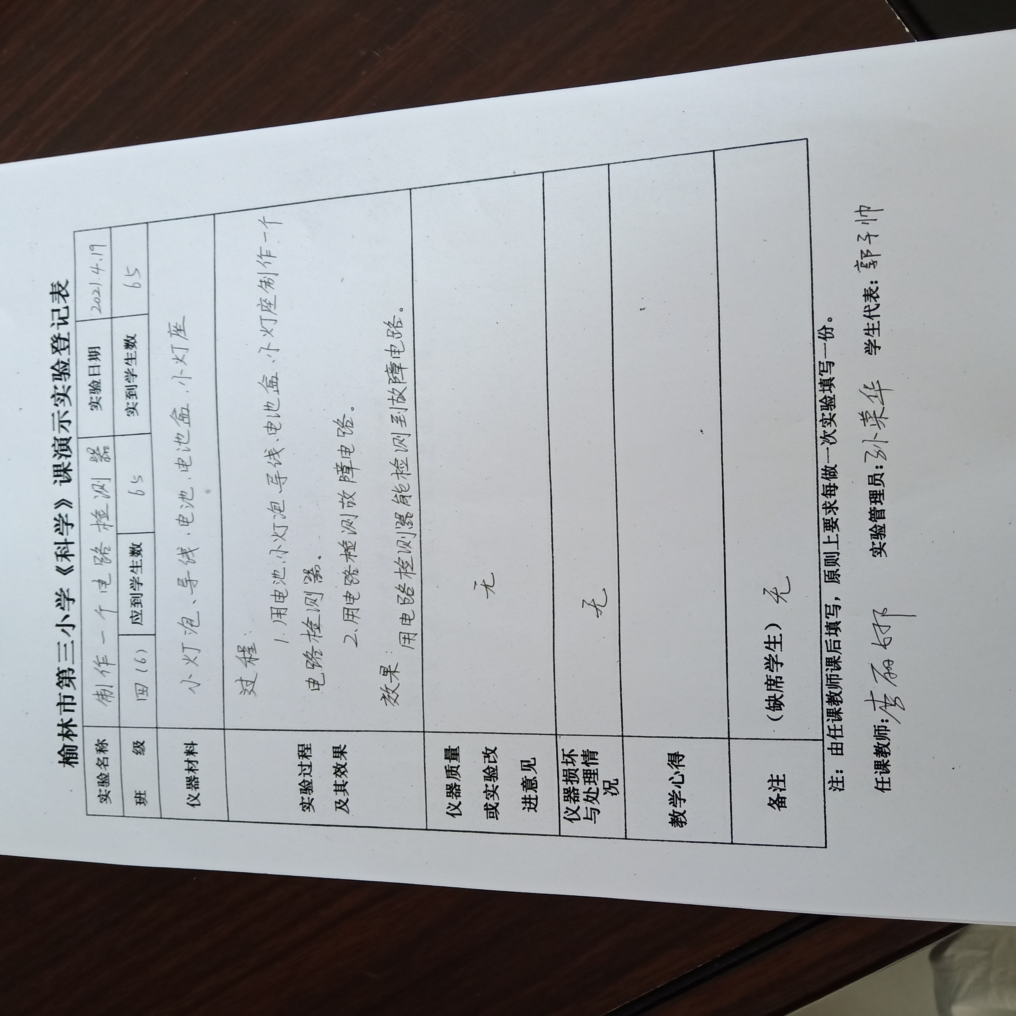 实验登记表