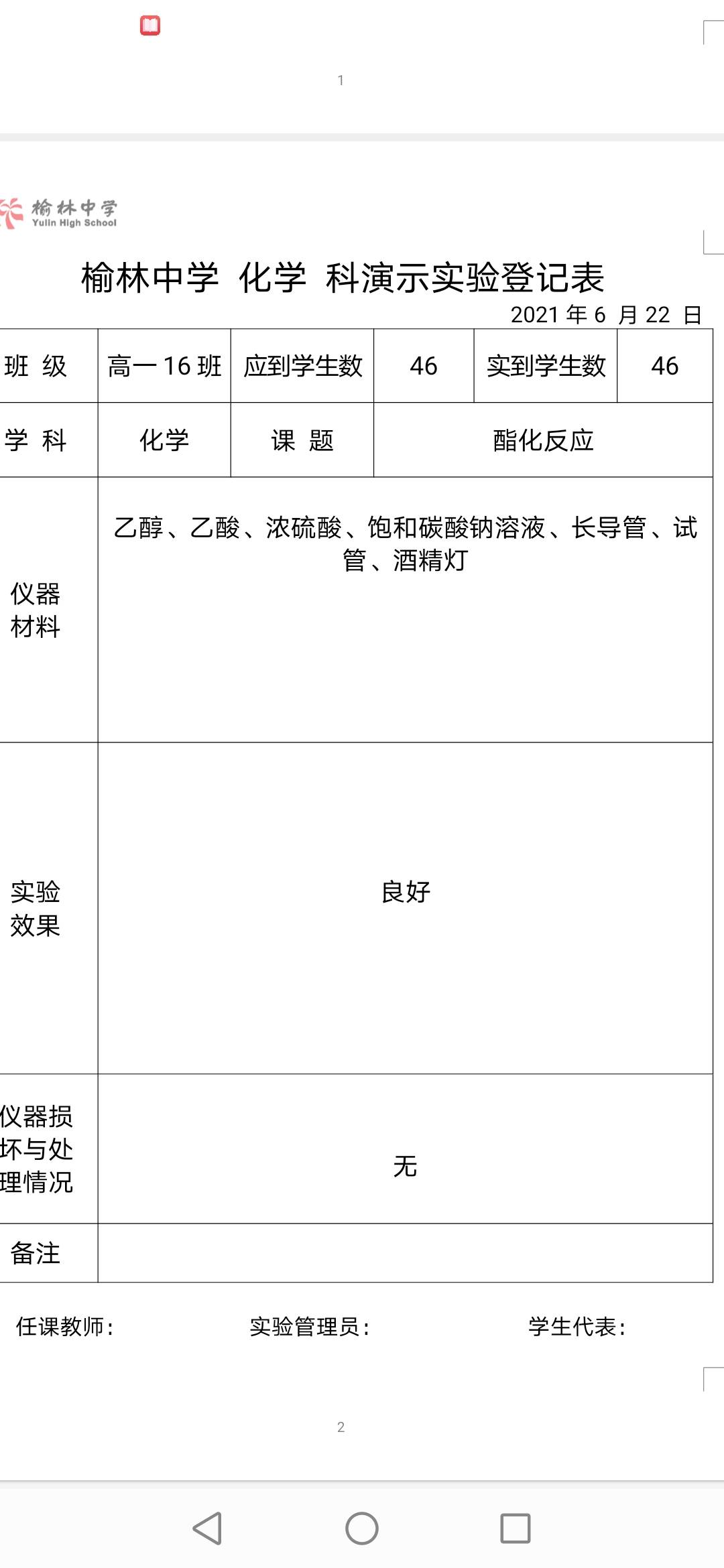 实验登记表