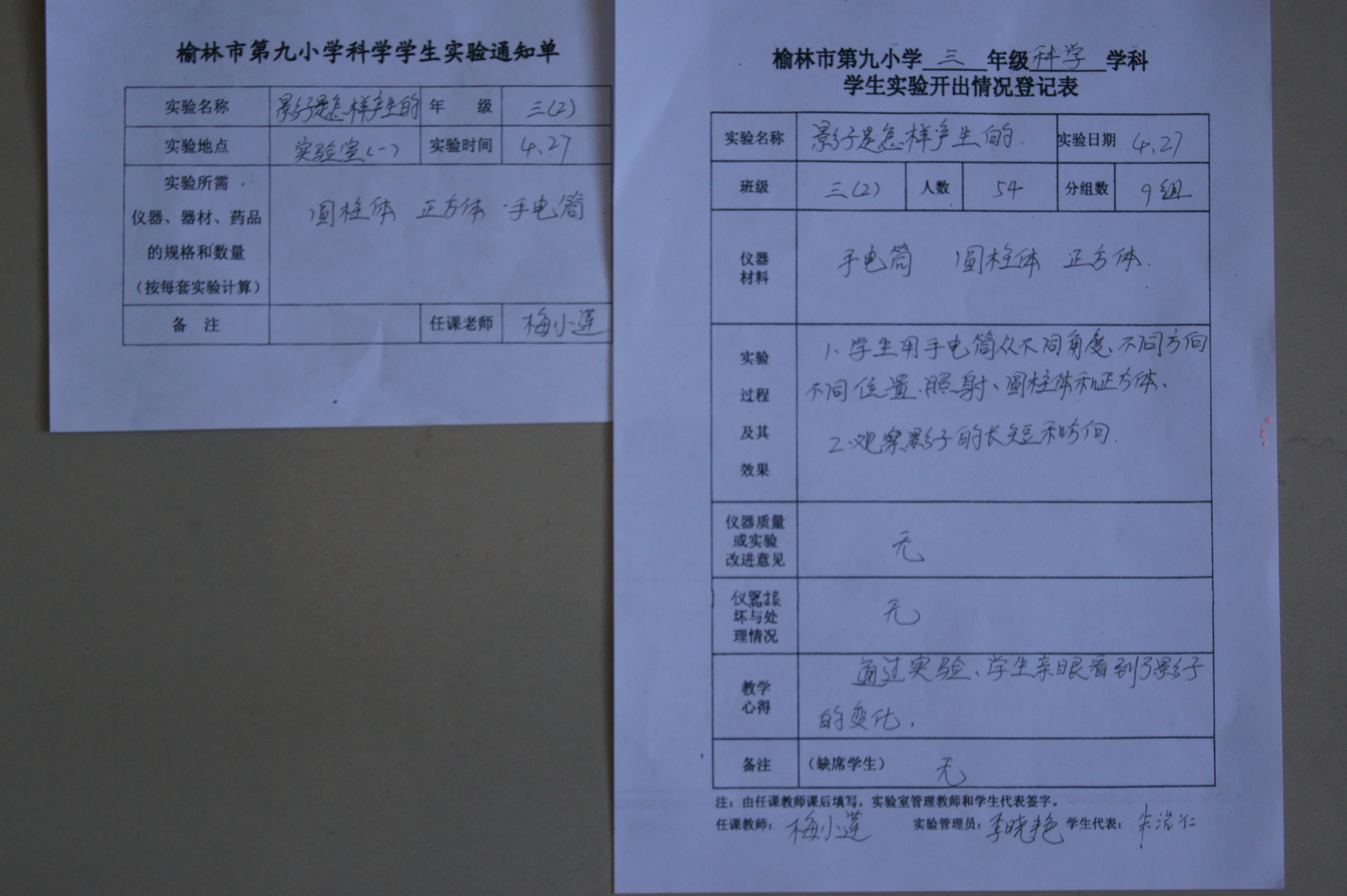 实验登记表