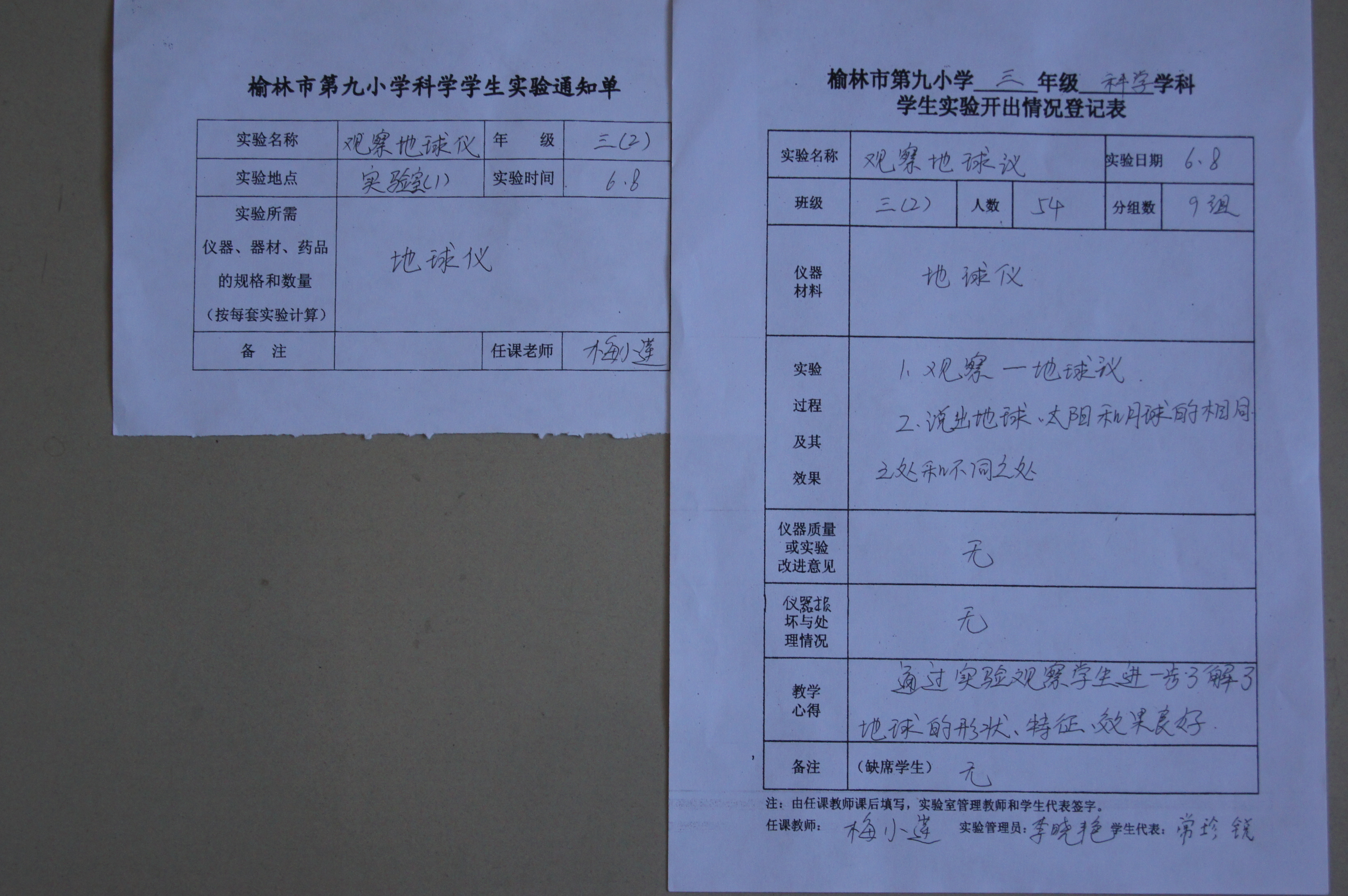 实验登记表