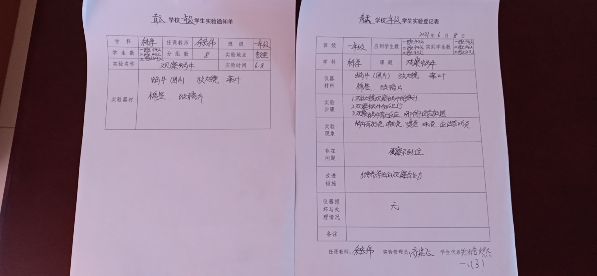 实验登记表