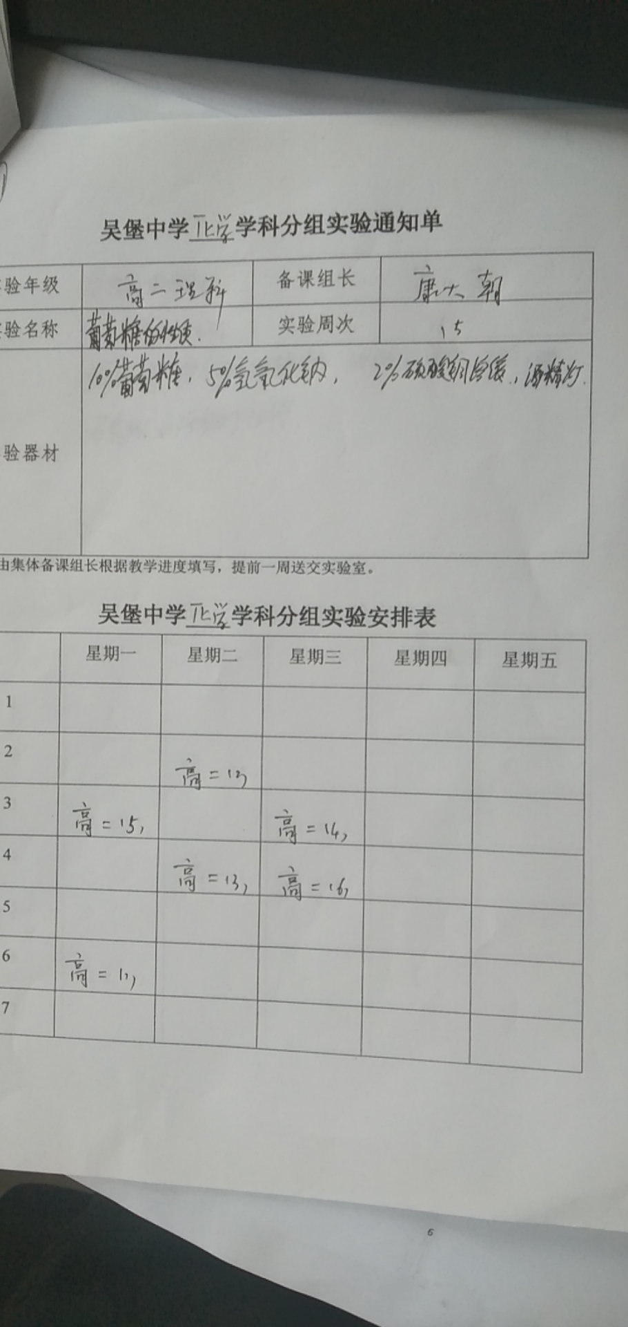 实验登记表