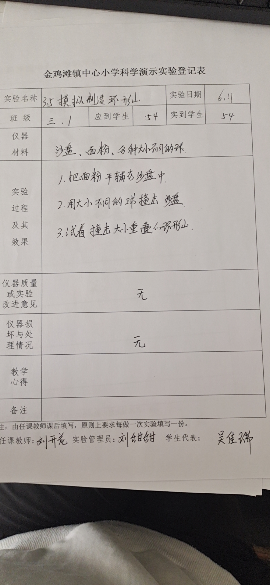 实验登记表