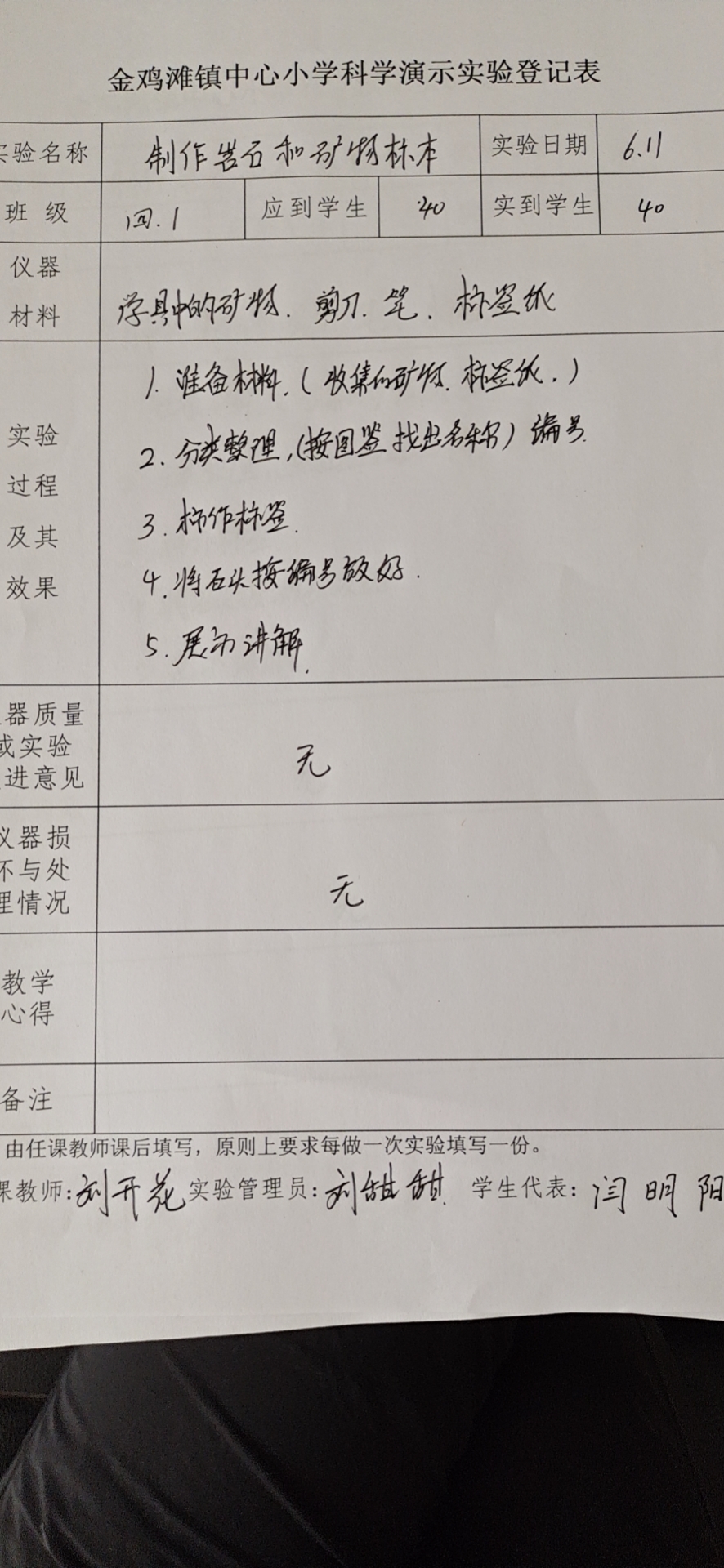 实验登记表