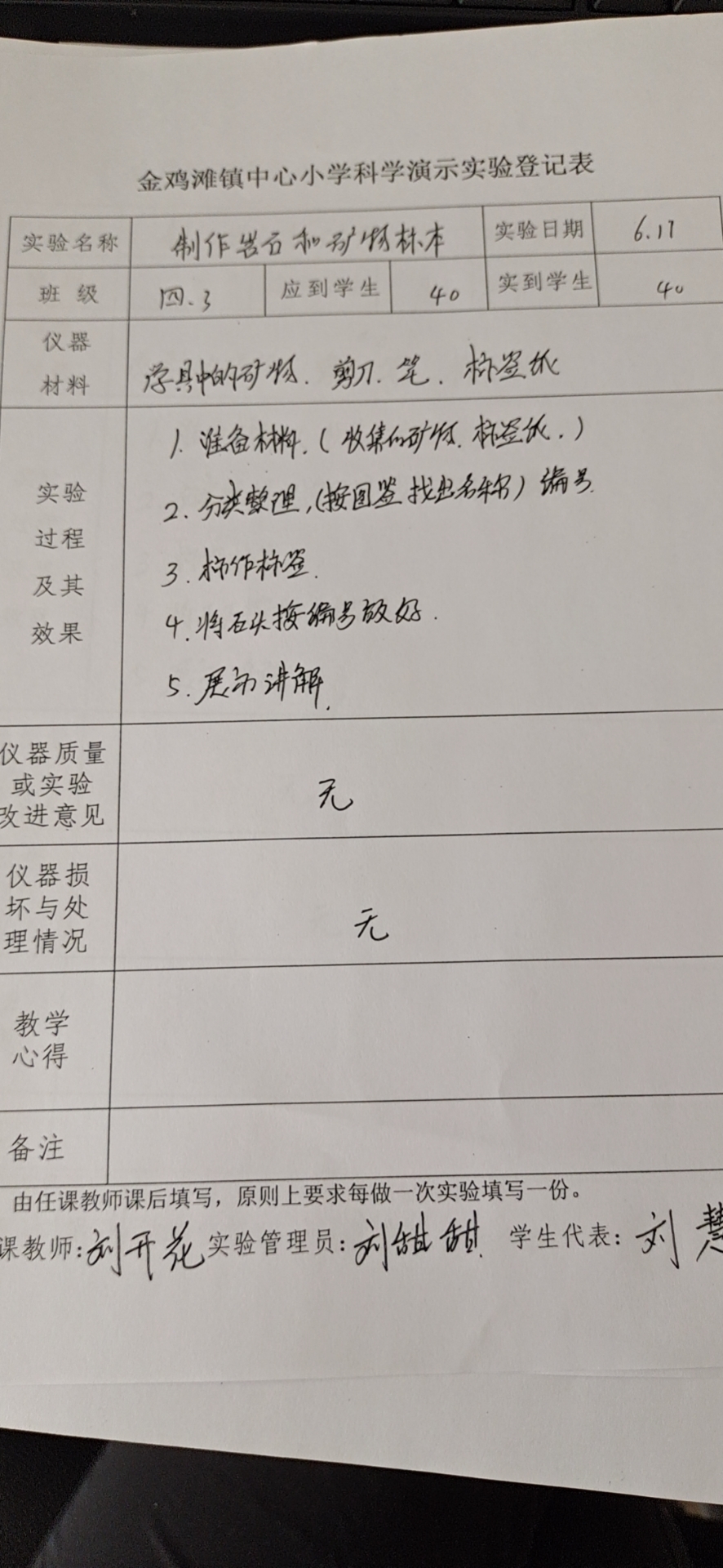 实验登记表