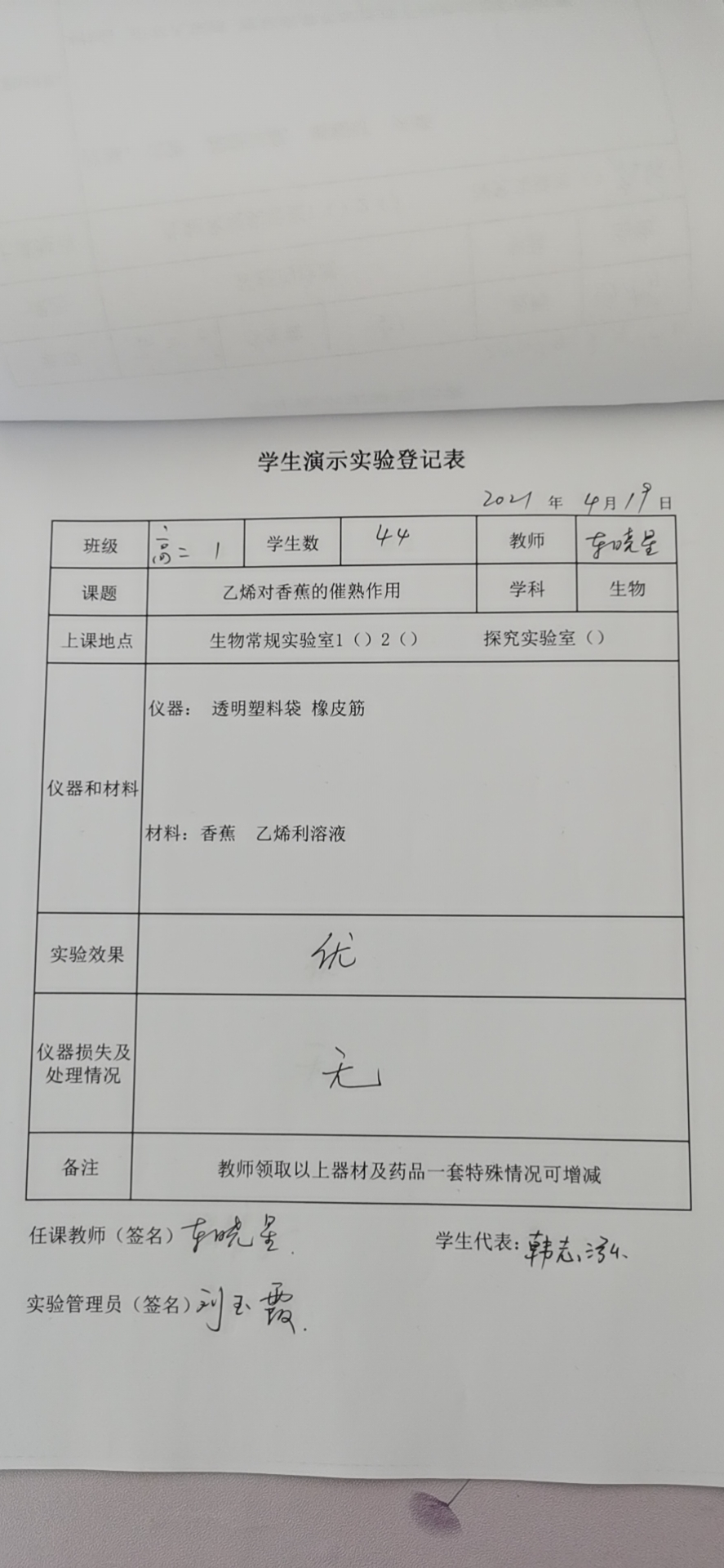 实验登记表