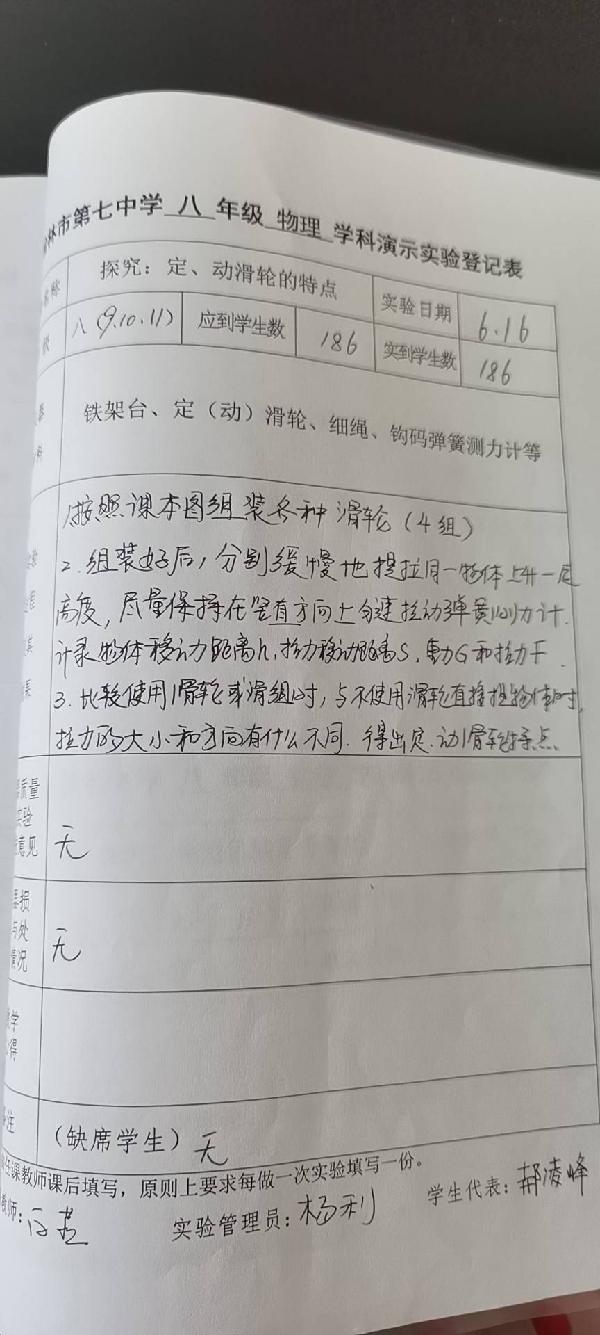实验登记表