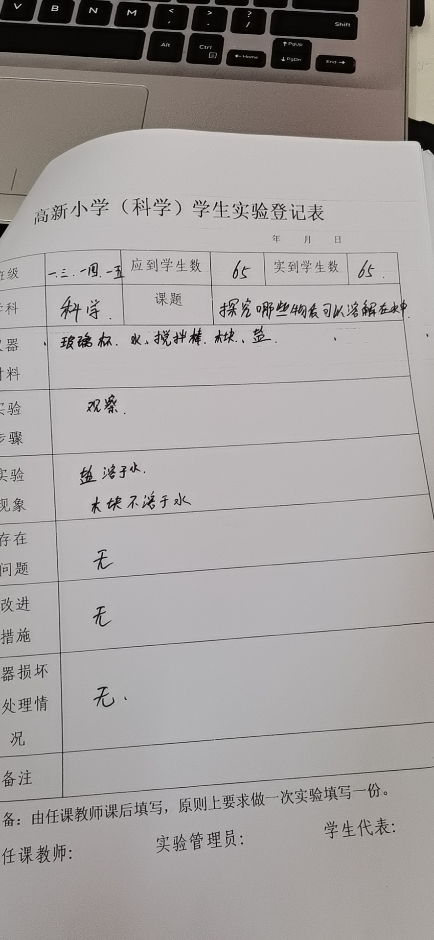 实验登记表