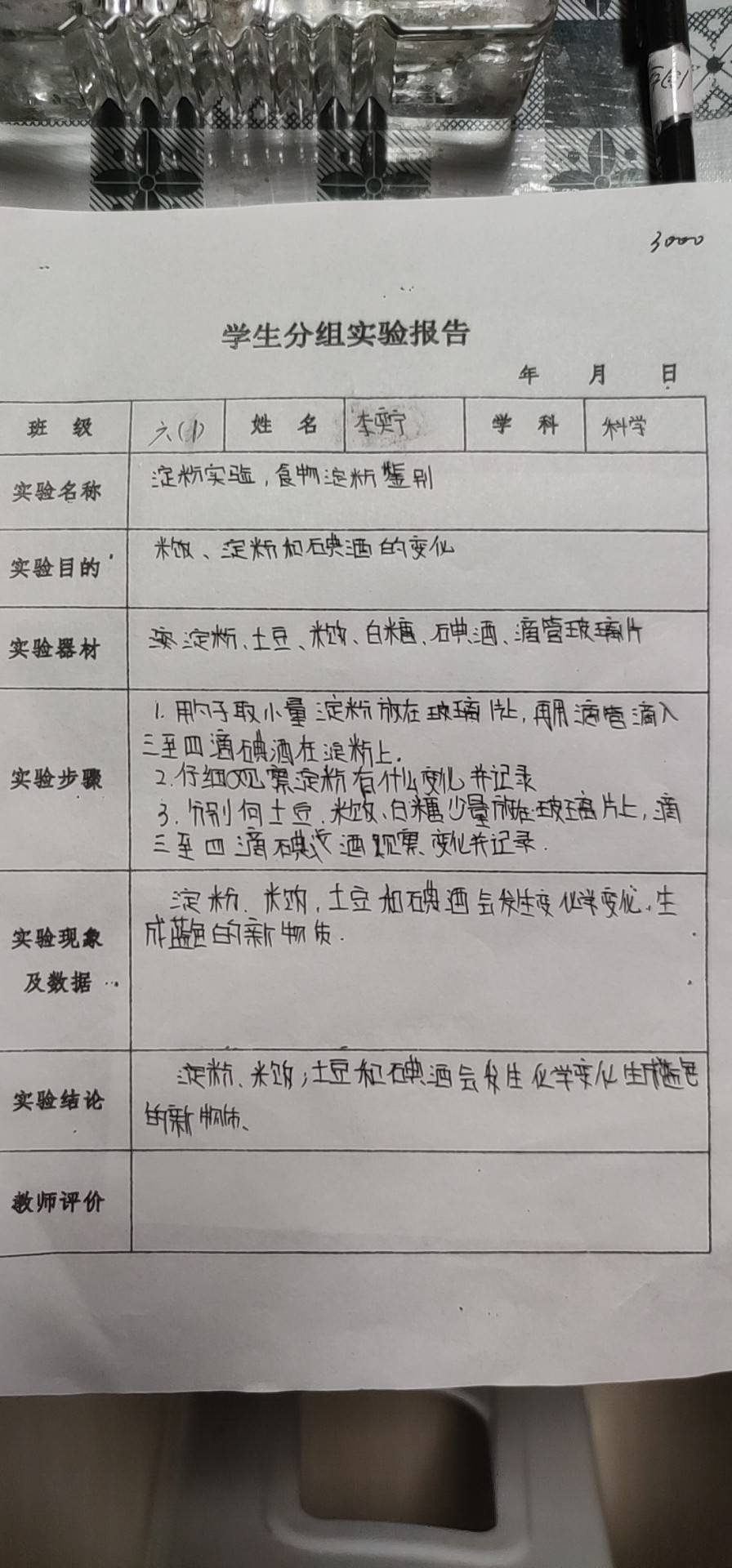 米饭、淀粉和碘酒的变化