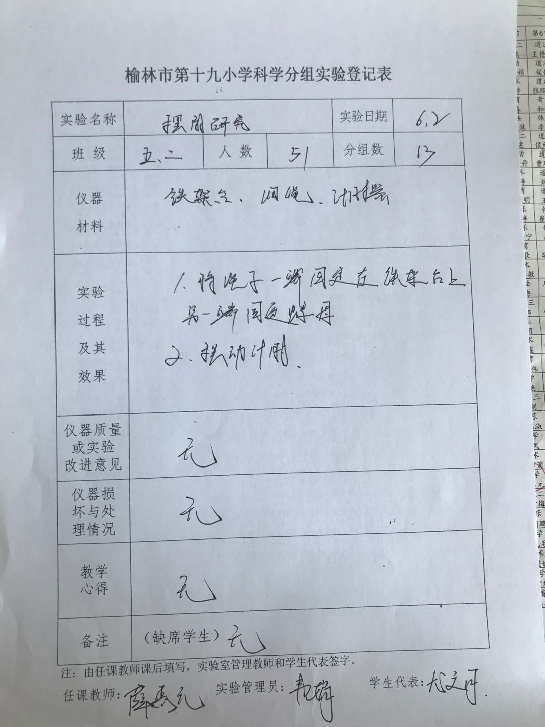 实验登记表
