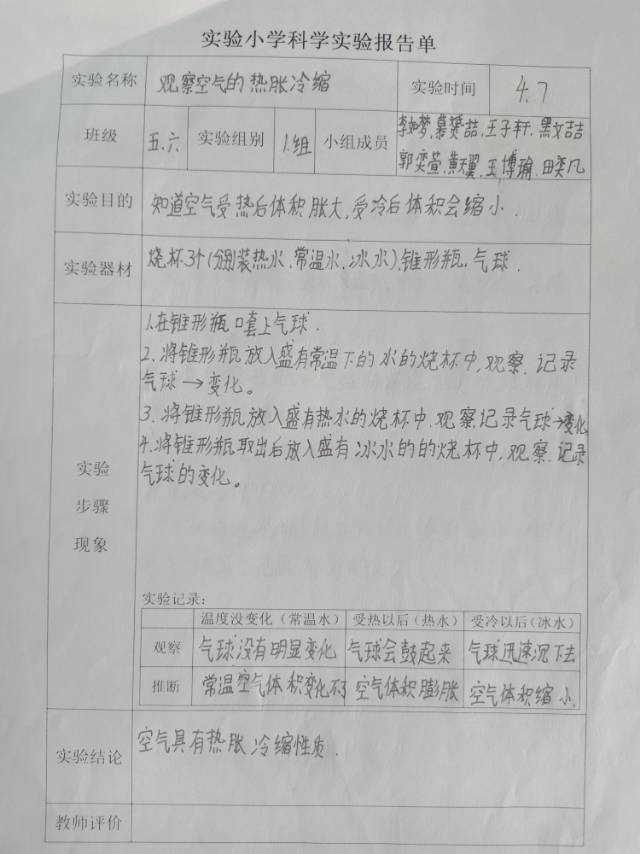 空气的热胀冷缩
