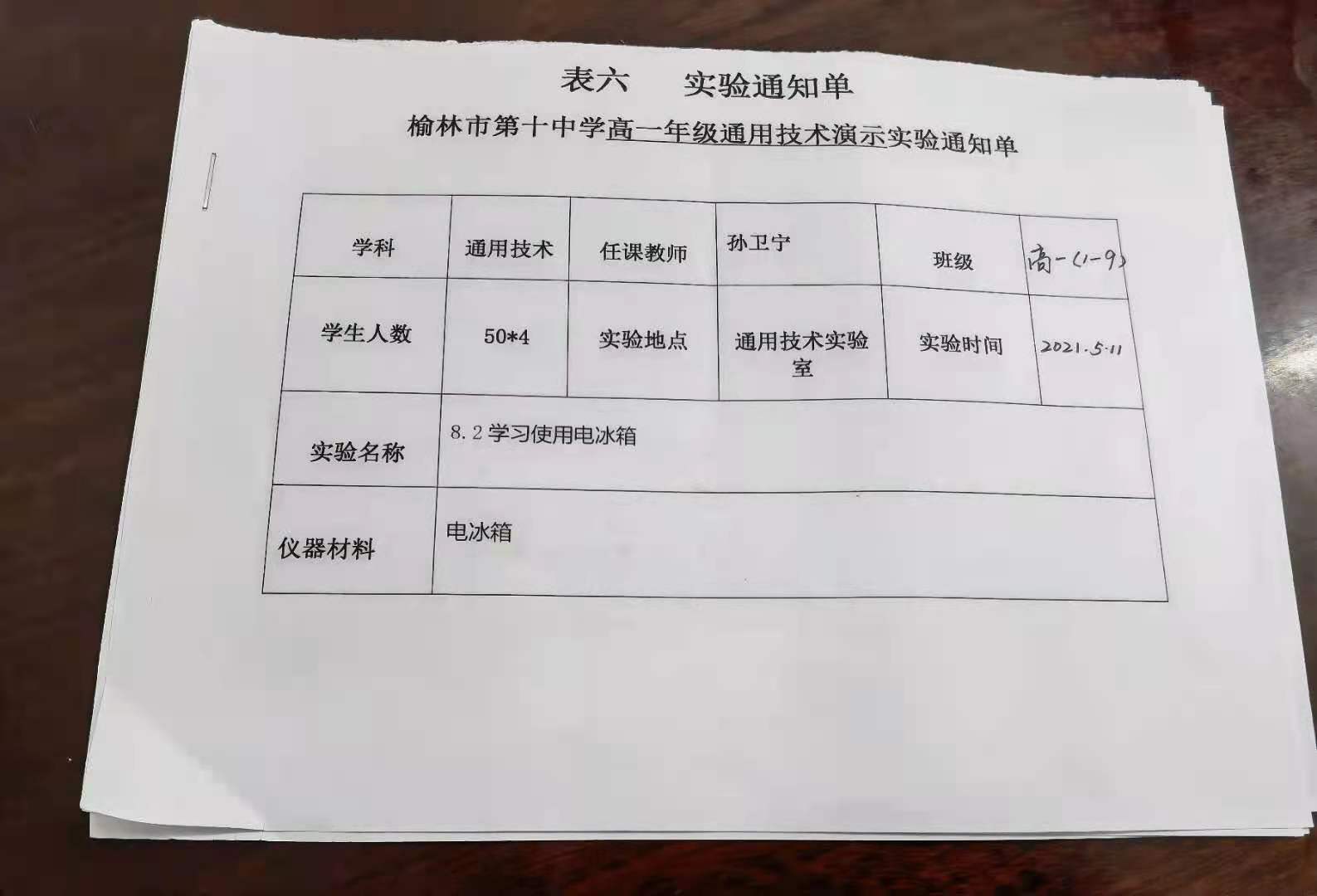 实验登记表