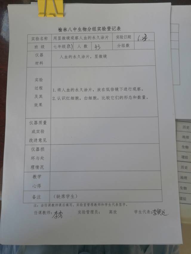 实验登记表