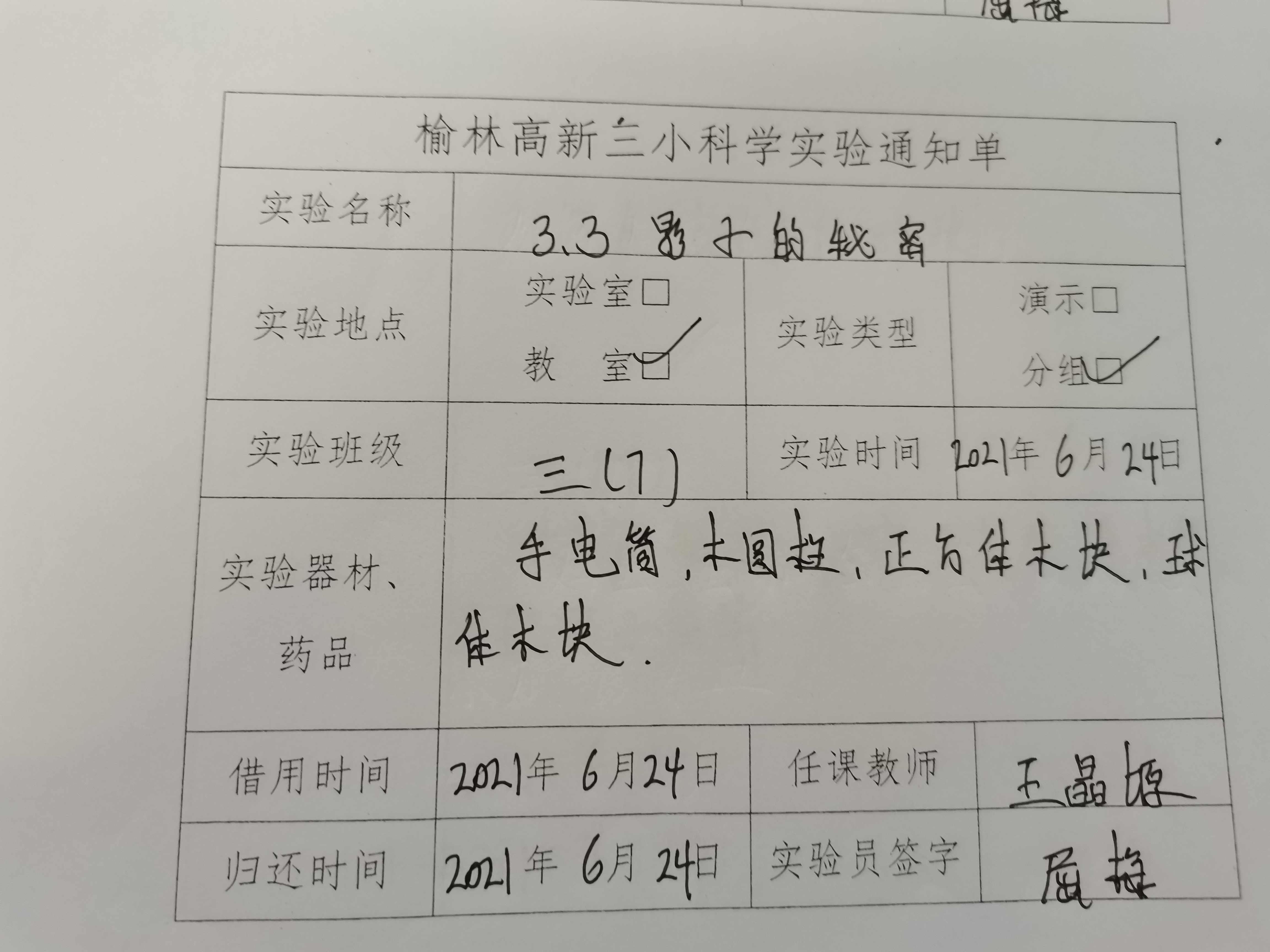 实验登记表
