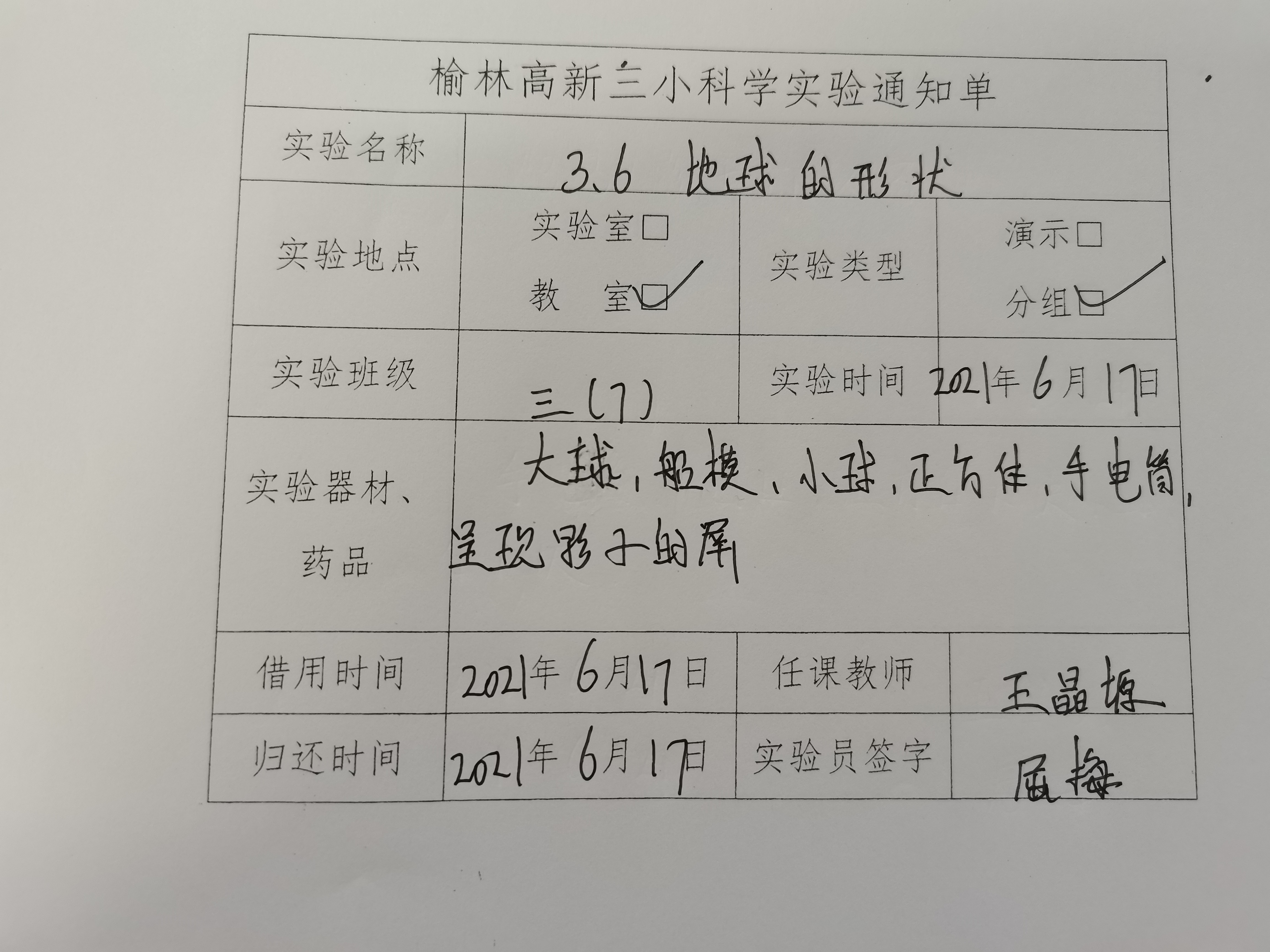 实验登记表